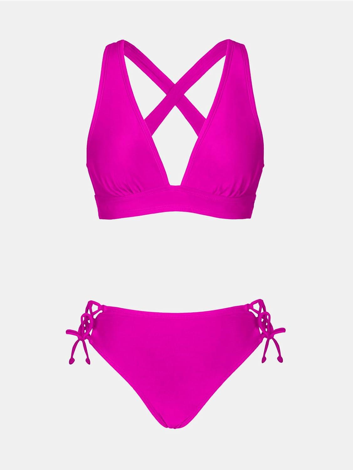 CUPSHE Bikini Set for Women Two Piece Swimsuit V Neck Triangle Top Wide Straps Cross Back Lace up Mid Rise(Magenta)