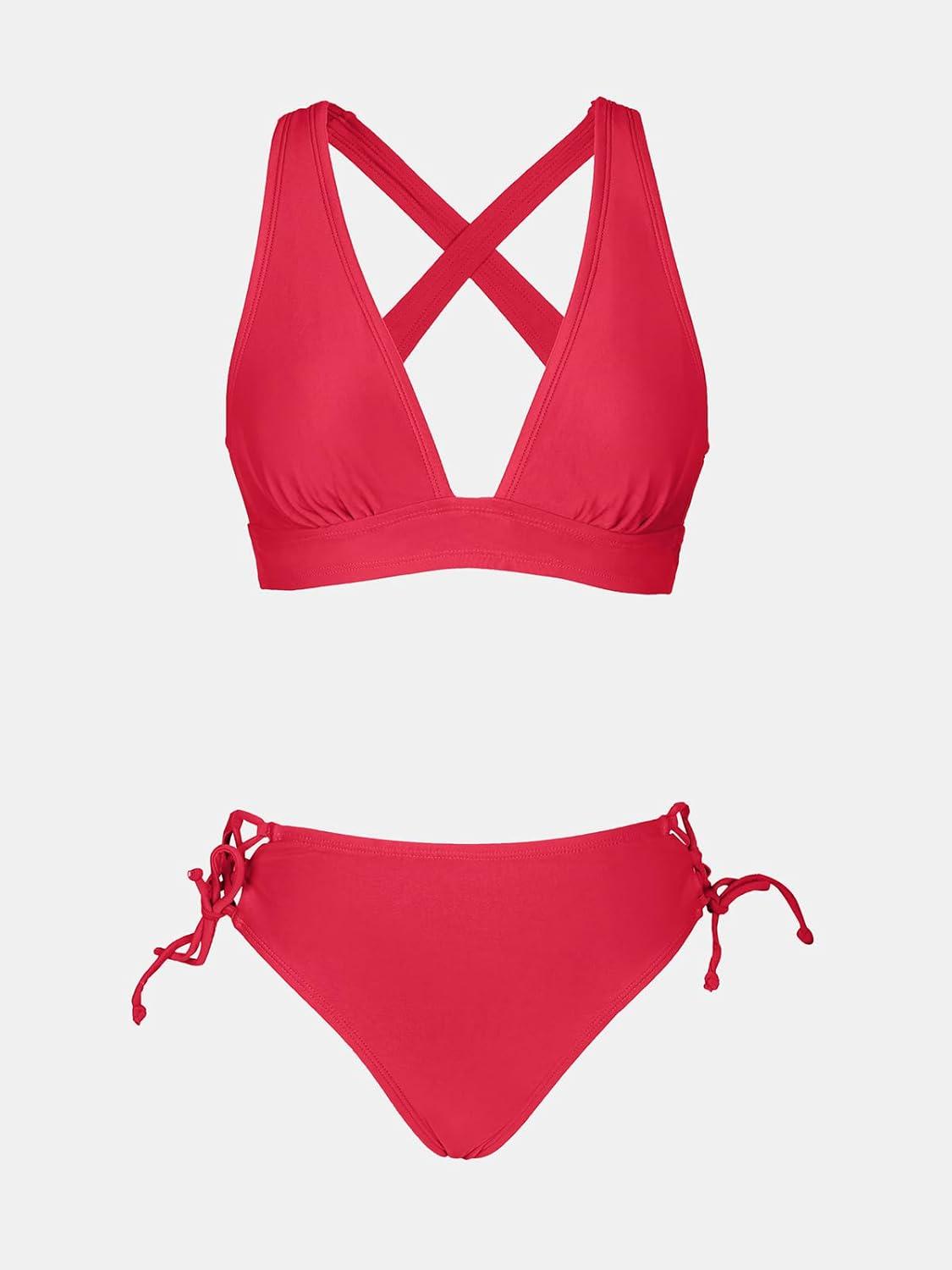 CUPSHE Bikini Set for Women Two Piece Swimsuit V Neck Triangle Top Wide Straps Cross Back Lace up Mid Rise(Red)