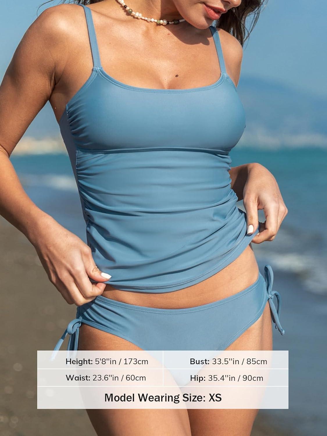 CUPSHE Women’s Tankini Sets Two Piece Swimsuit Scoop Neck Ruched Adjustable Straps Drawstring Mid Rise(Sky Blue)