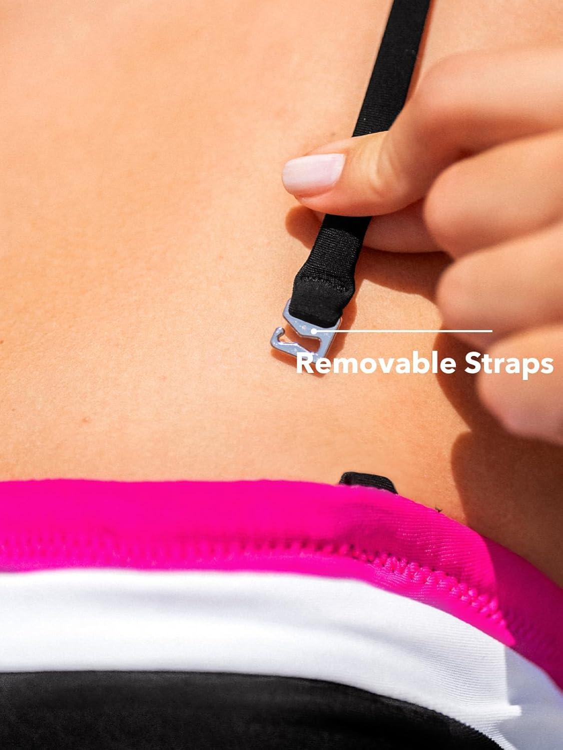 CUPSHE Women’s Tankini Sets Two Piece Swimsuit Square Neck Bandeau Bathing Suit Spaghetti Adjustable Removable Straps(Black/White/Magenta)