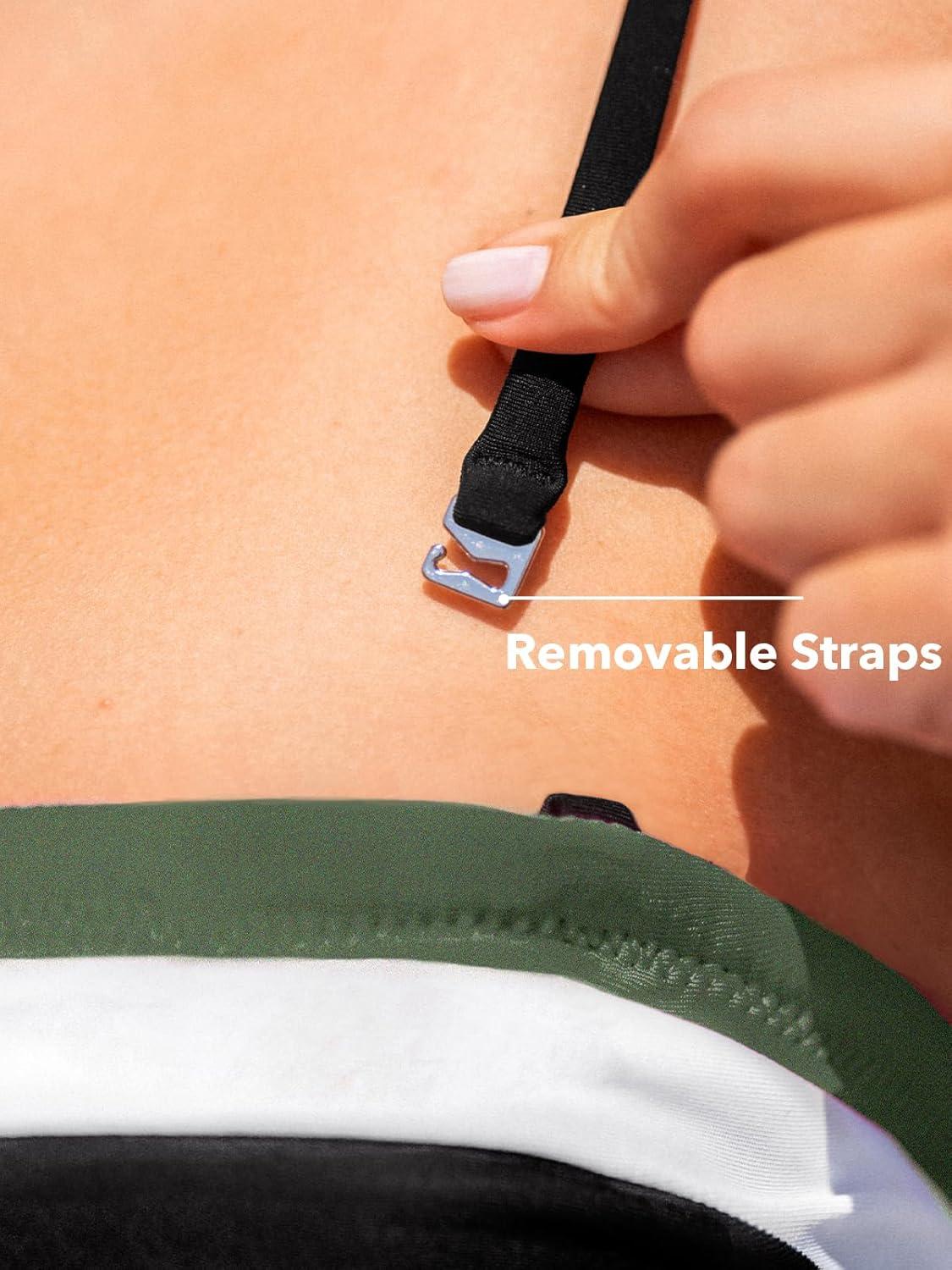 CUPSHE Women’s Tankini Sets Two Piece Swimsuit Square Neck Bandeau Bathing Suit Spaghetti Adjustable Removable Straps(Black/White/Olive Green)