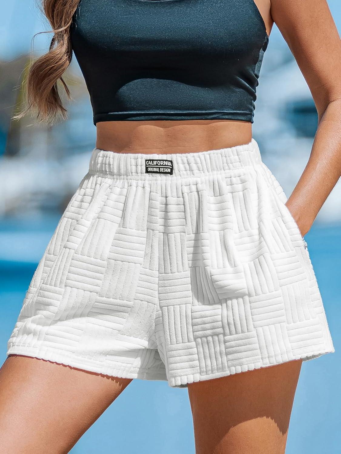CUPSHE Women’s Casual Shorts Cotton High Rise Beach Cover Ups Summer Shorts with Pockets(B-white)