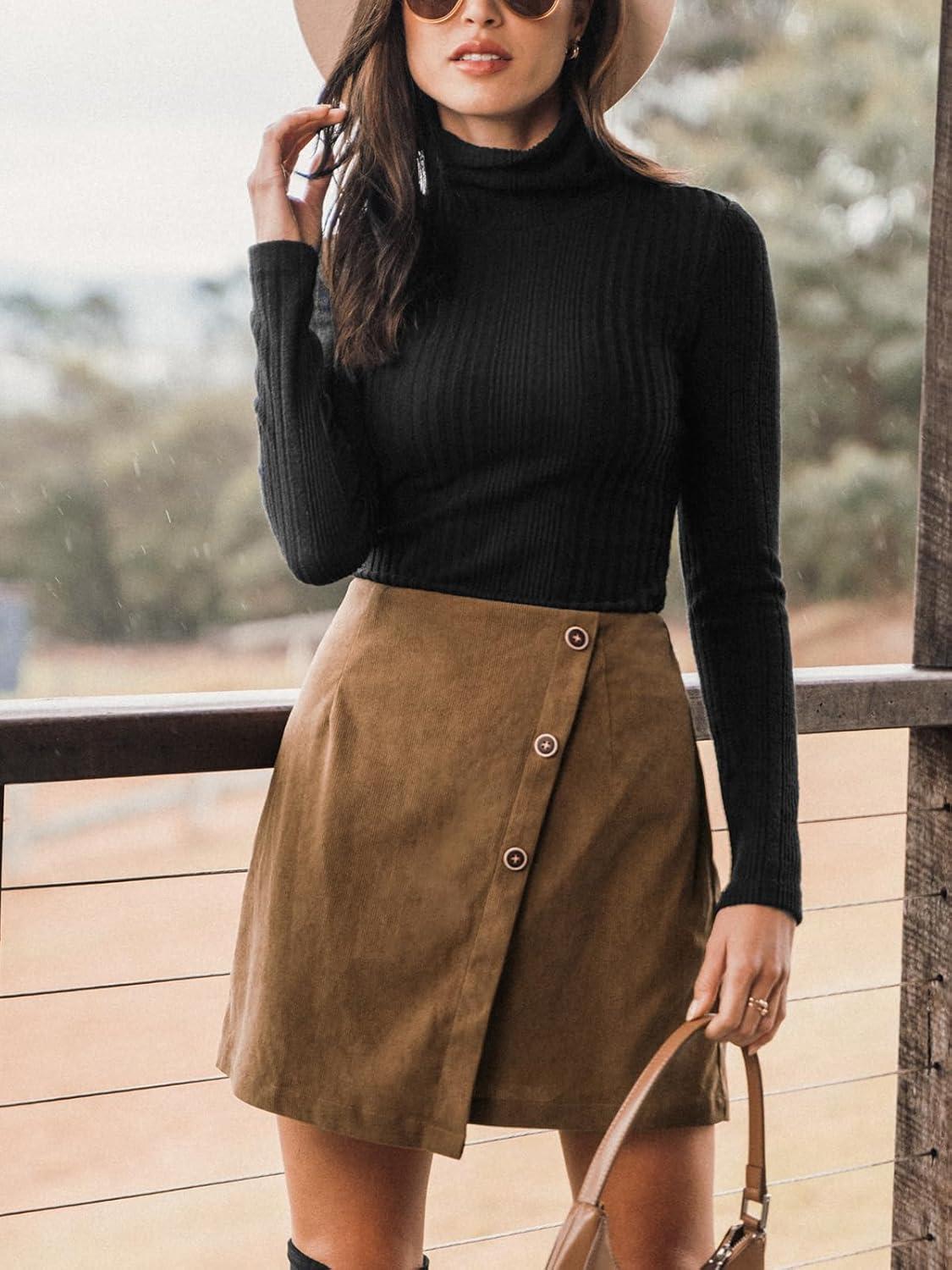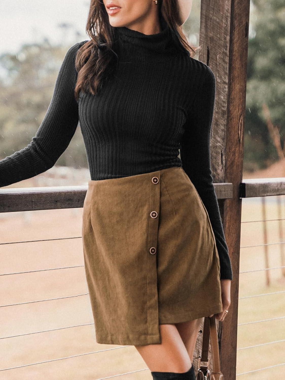 CUPSHE Women’s Autumn High Waist Button Front Outdoor Casual Skirts with Zipper Mini Wrap Skirt(Brown)
