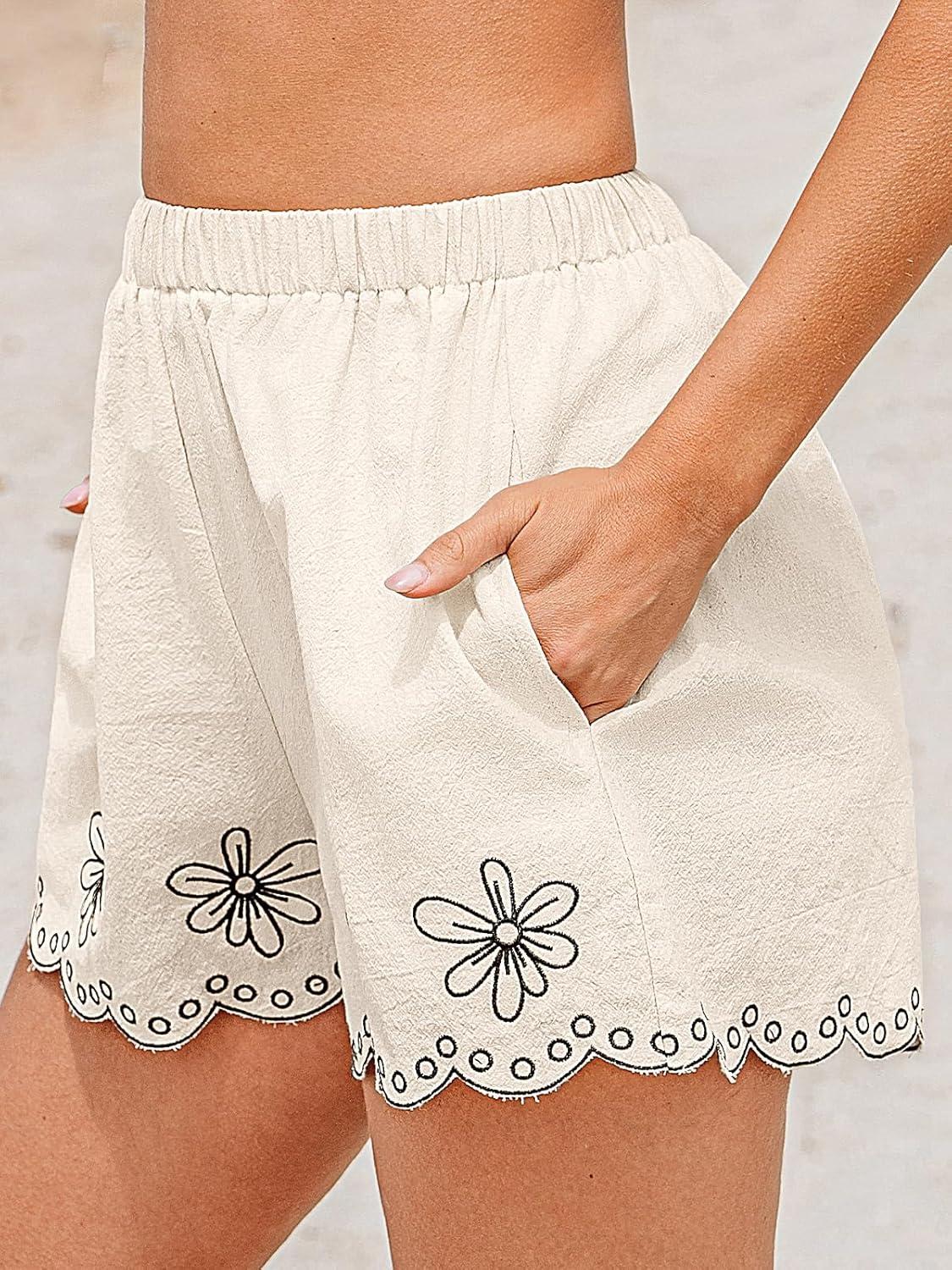 CUPSHE Womens Wide Leg Pants Elastic High Waisted Beach Trousers Cotton Linen Summer Palazzo(Checkered Green)