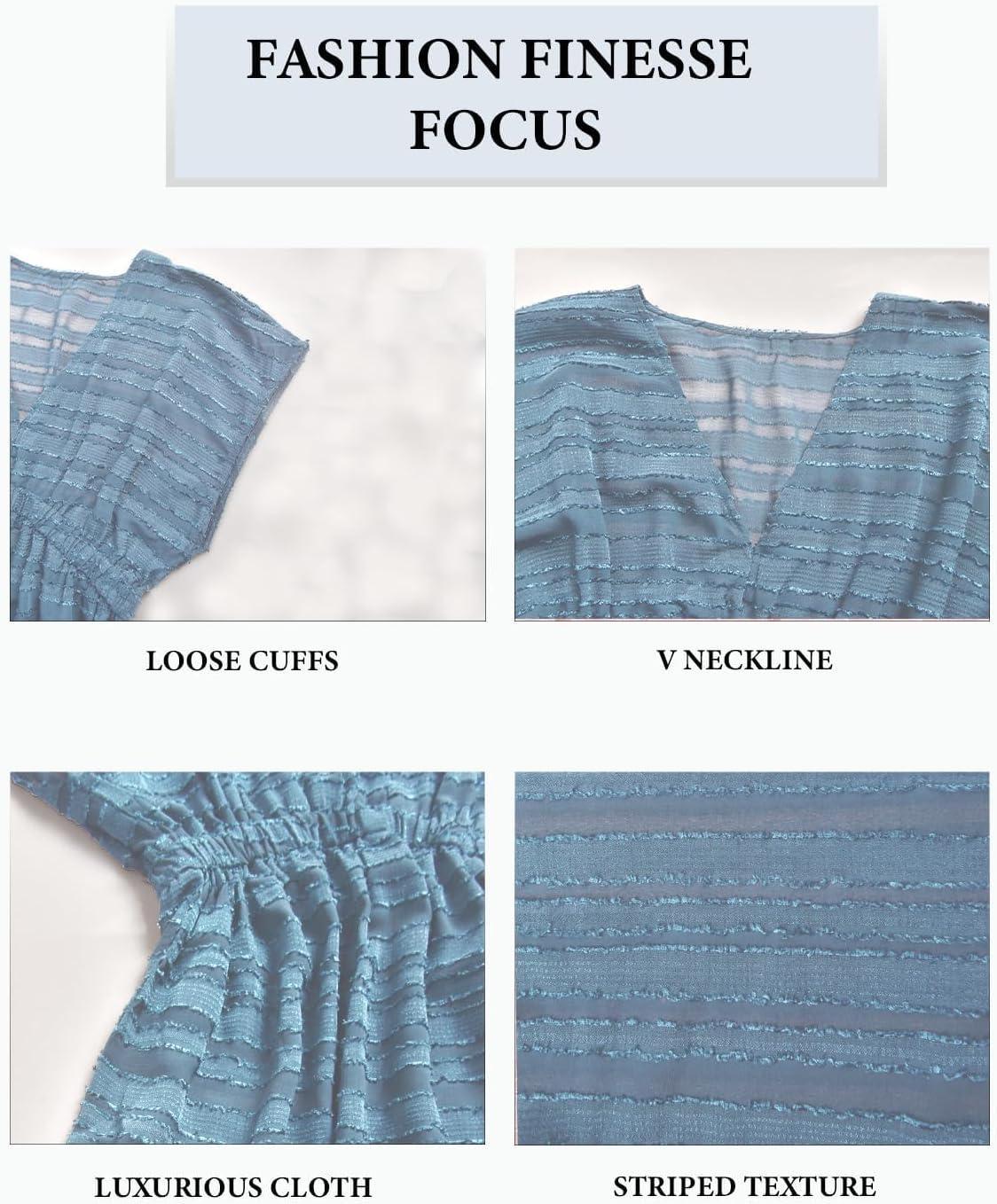 CUPSHE Women’s Swim Cover Up Dress V Neck Textured Striped Short Sleeve Cover Ups Casual Beach Summer(Blue)