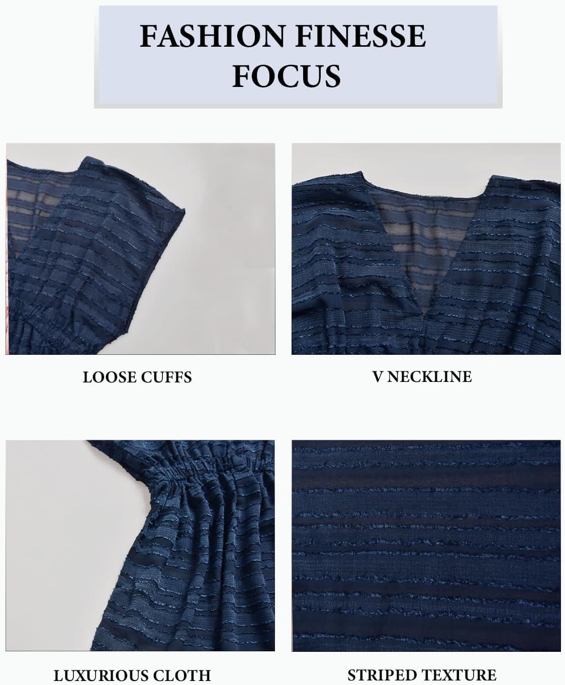 CUPSHE Women’s Swim Cover Up Dress V Neck Textured Striped Short Sleeve Cover Ups Casual Beach Summer(Dark Blue)