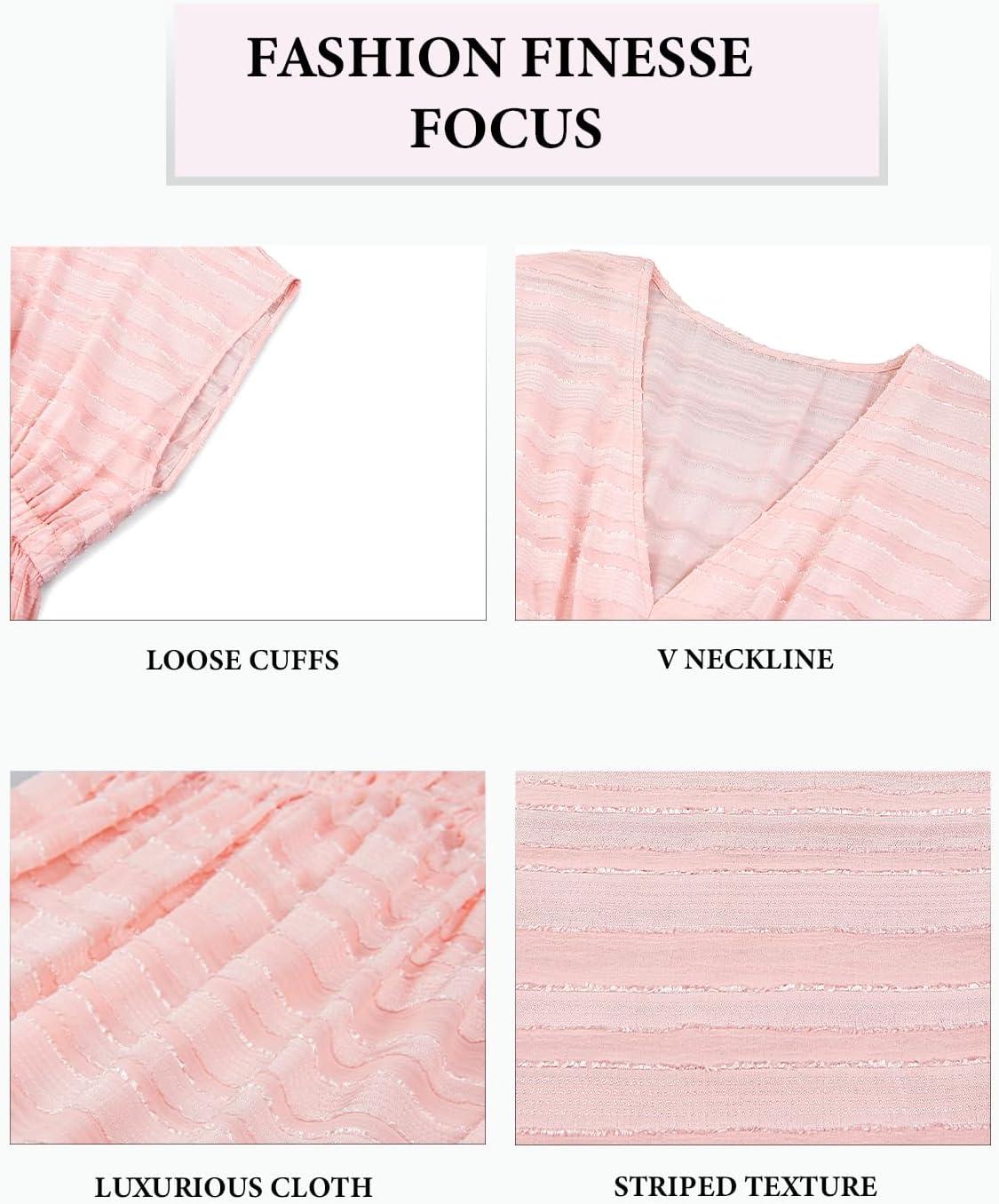 CUPSHE Women’s Swim Cover Up Dress V Neck Textured Striped Short Sleeve Cover Ups Casual Beach Summer(Light Pink)