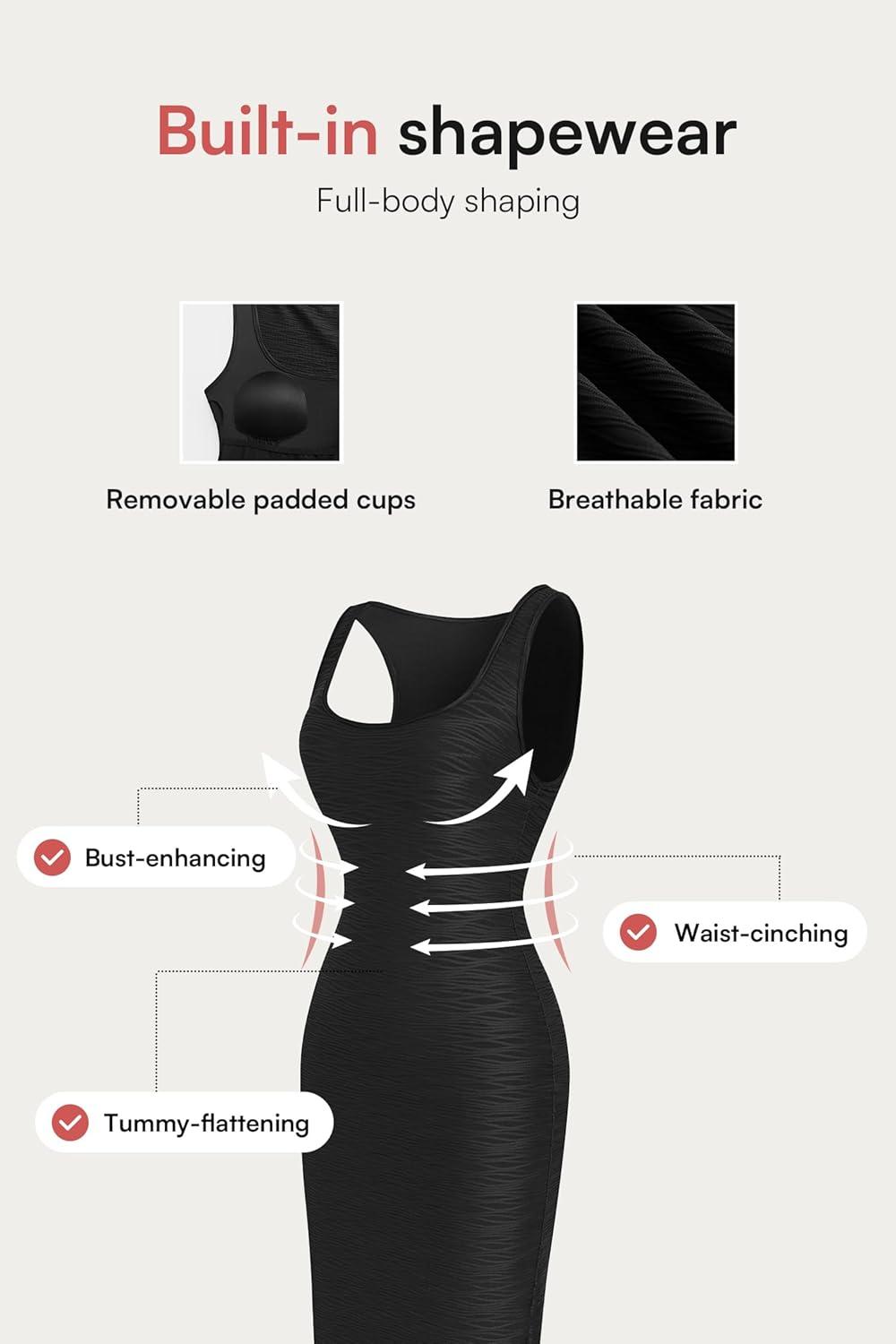 CUPSHE Women’s Shapewear Dresses Sleeveless Stretchy Textured Square Neck Bodycon Slim Fit Party Evening Midi Dress(Black)