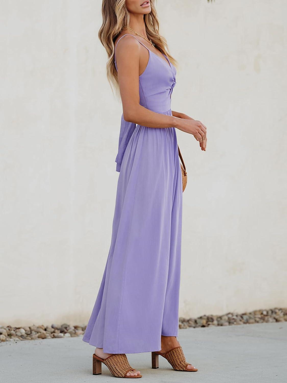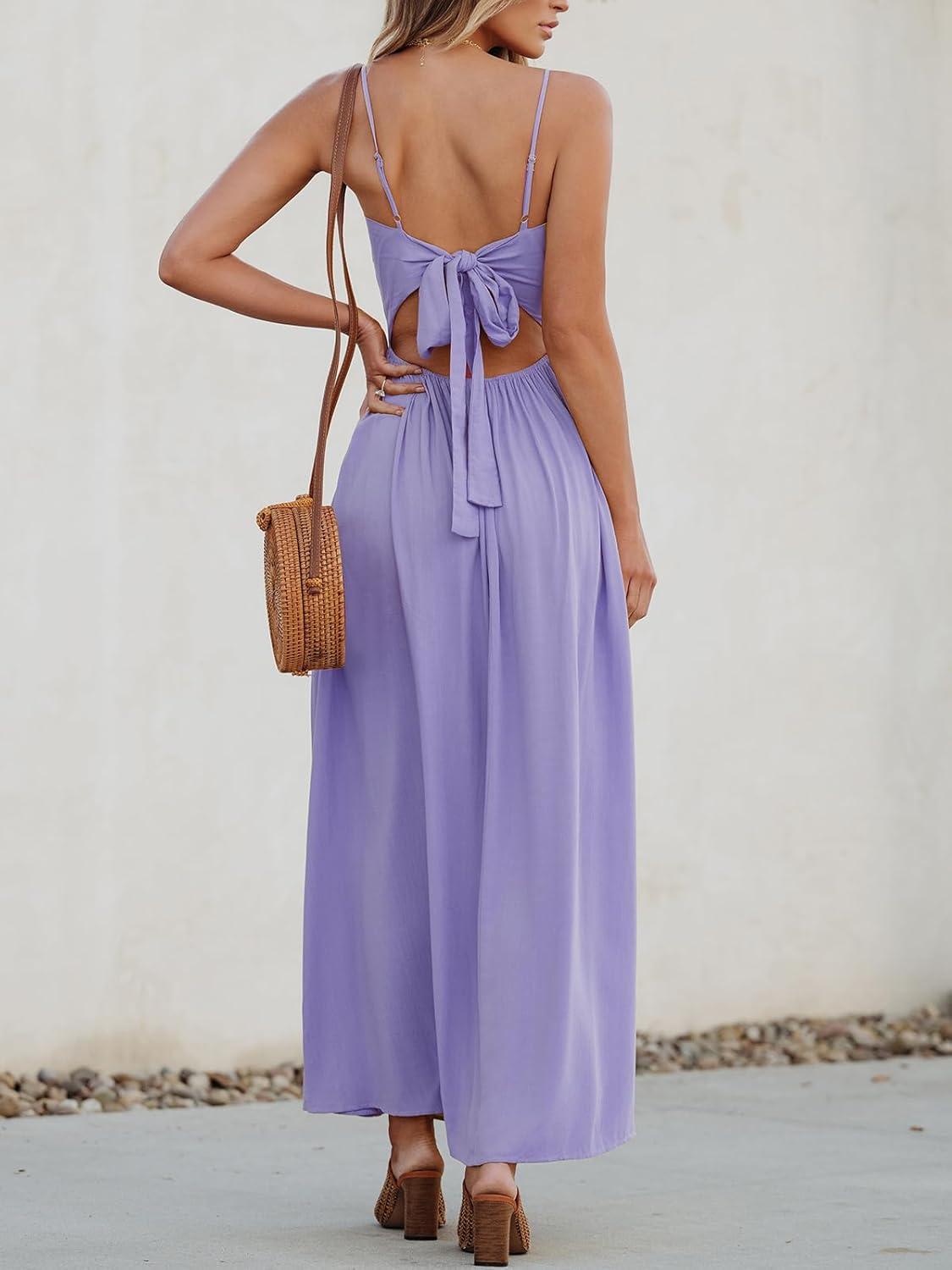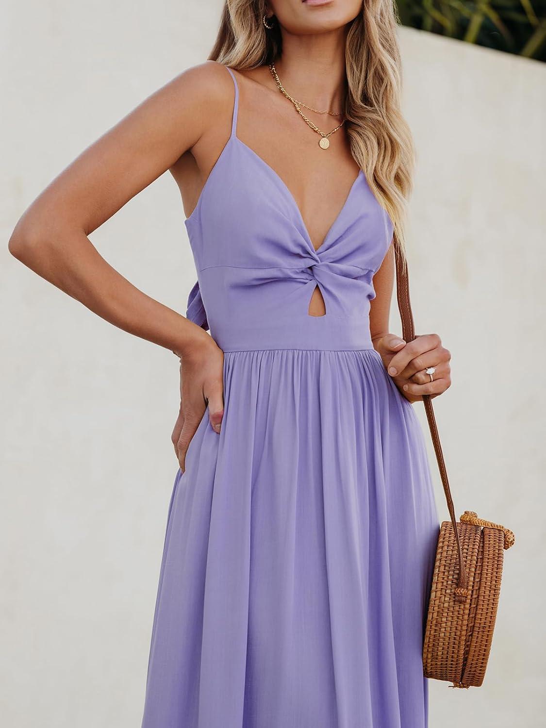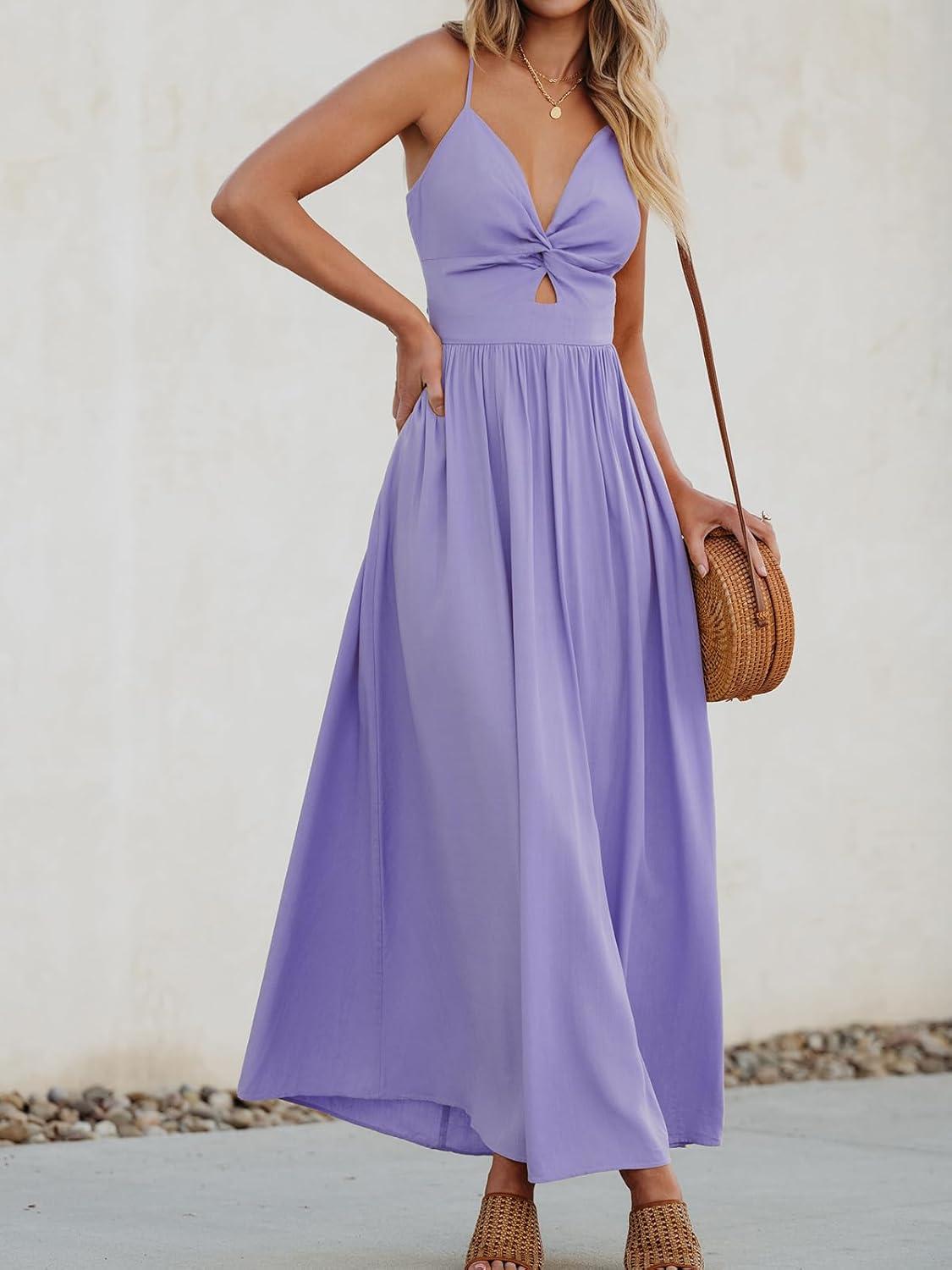 CUPSHE Women Casual Dress Beach Sleeveless V Neck Summer Cutout Spaghetti Straps Formal Maxi Sun Dresses(Purple)