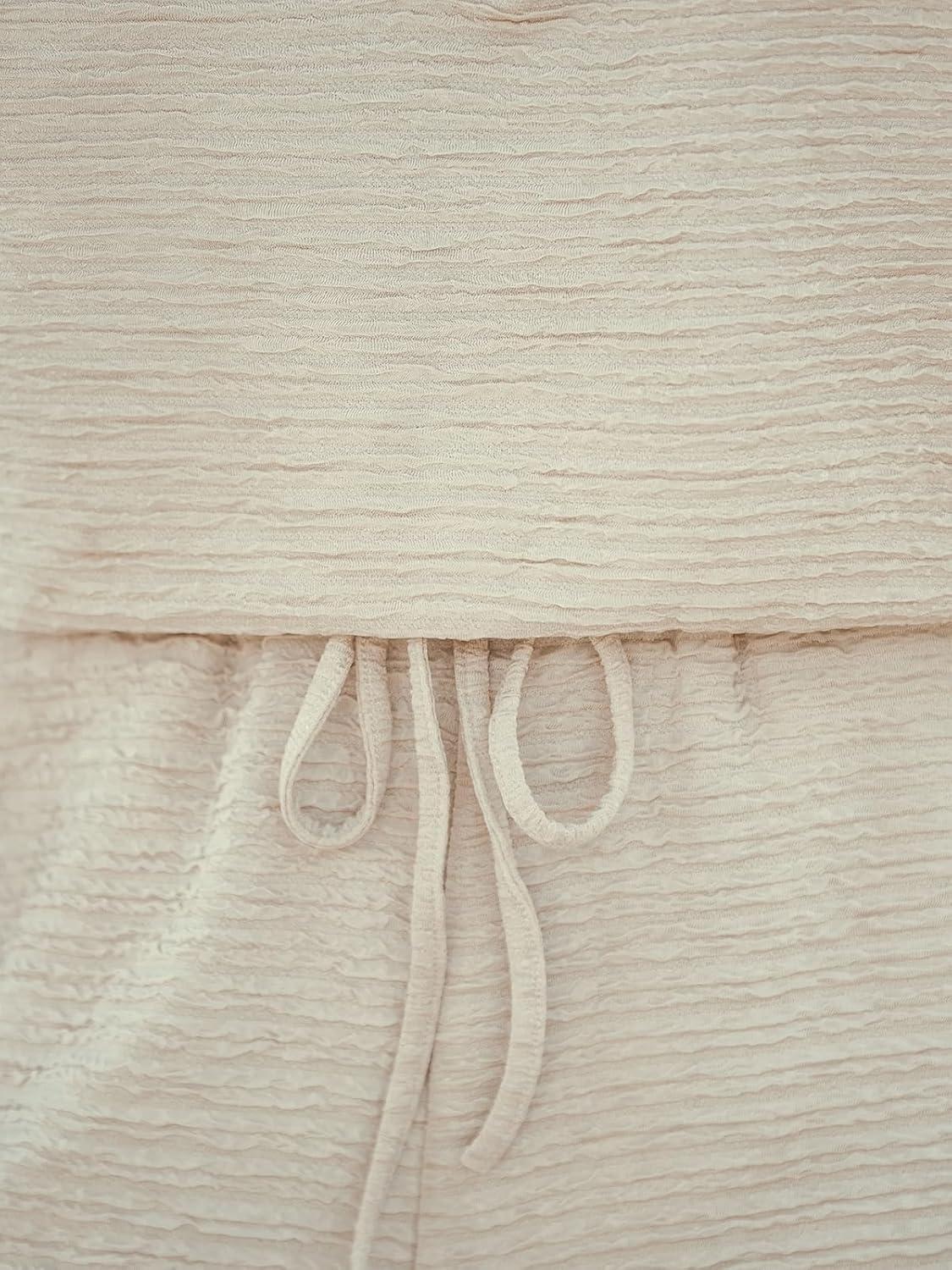 CUPSHE Women’s Romper Knit V Neck Short Sleeves Drawstring Waist Straight leg Outfit Casual Dressy(Beige)