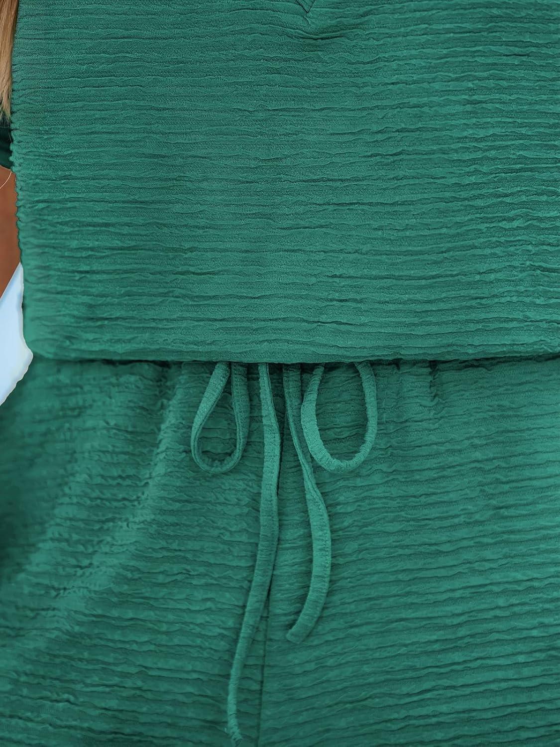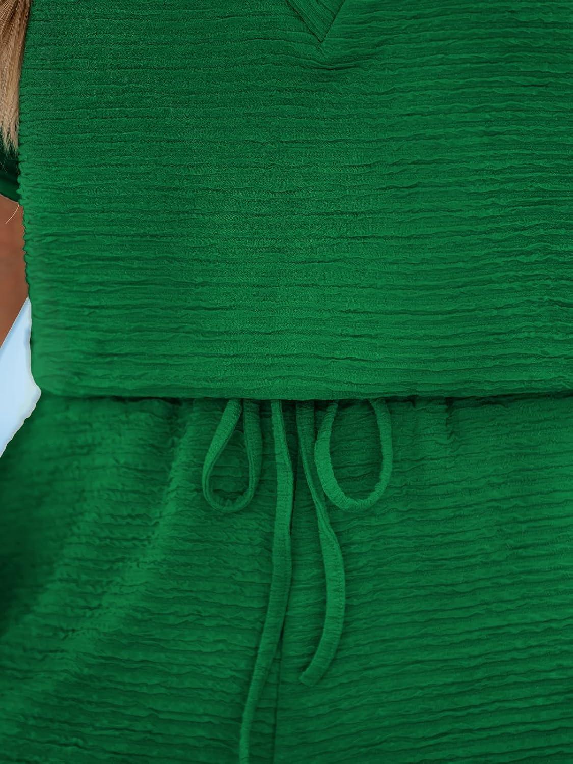 CUPSHE Women’s Romper Knit V Neck Short Sleeves Drawstring Waist Straight leg Outfit Casual Dressy(Emerald Green)