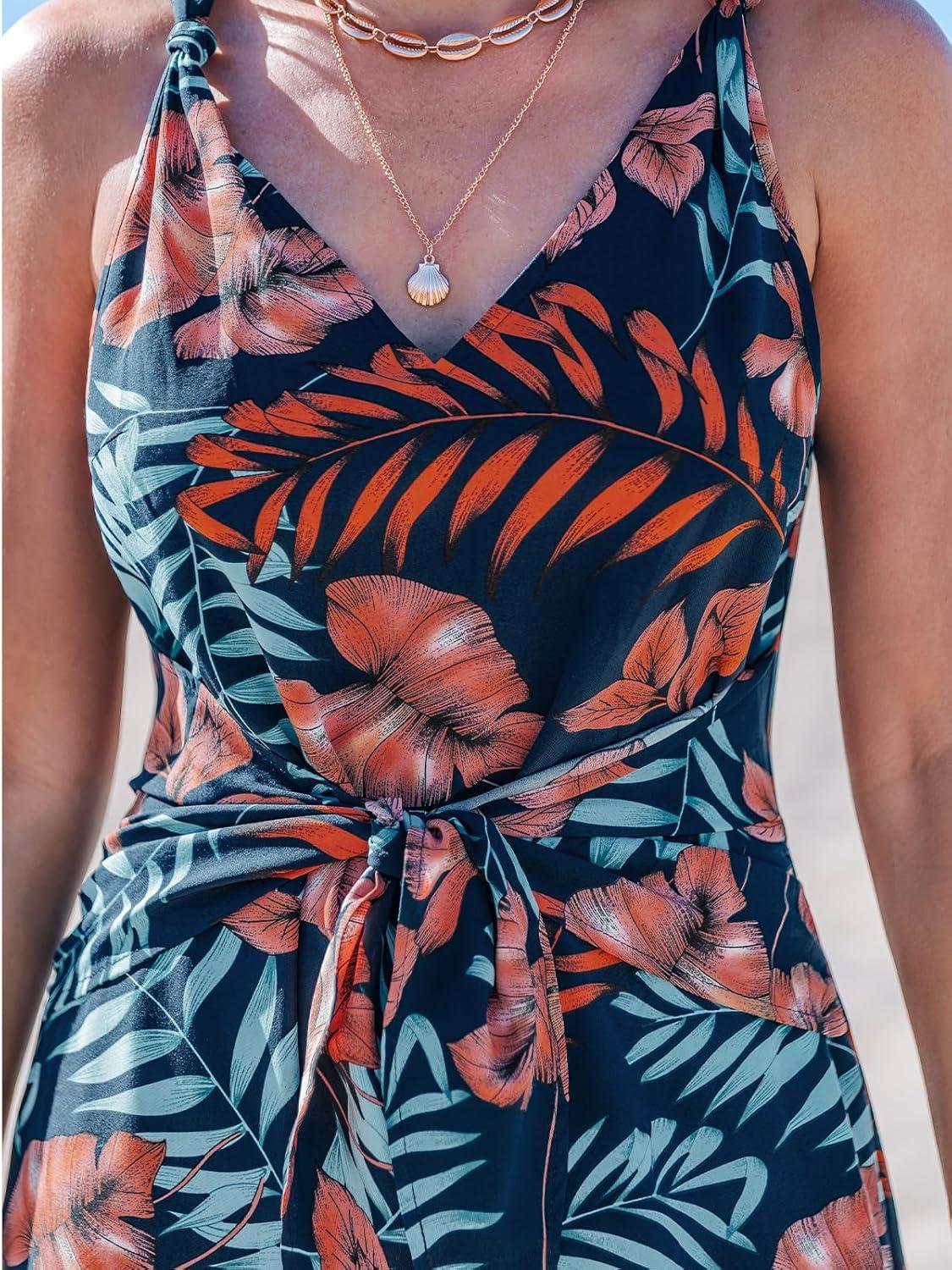 CUPSHE Women’s Summer Jumpsuits Sleeveless Tie Knot Wide Leg Long Pants Romper with Pockets(Orange)