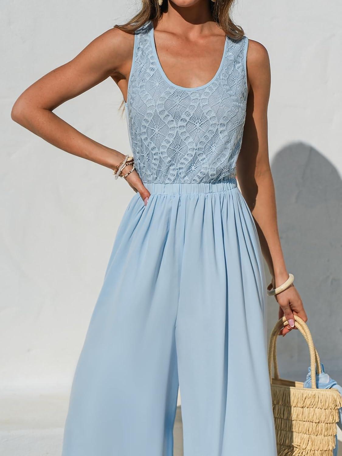 CUPSHE Women’s Sleeveless Jumpsuit Summer Wide Leg One Piece Romper Casual Elegant Outfit for Beach Party Travel Outfits(Blue)