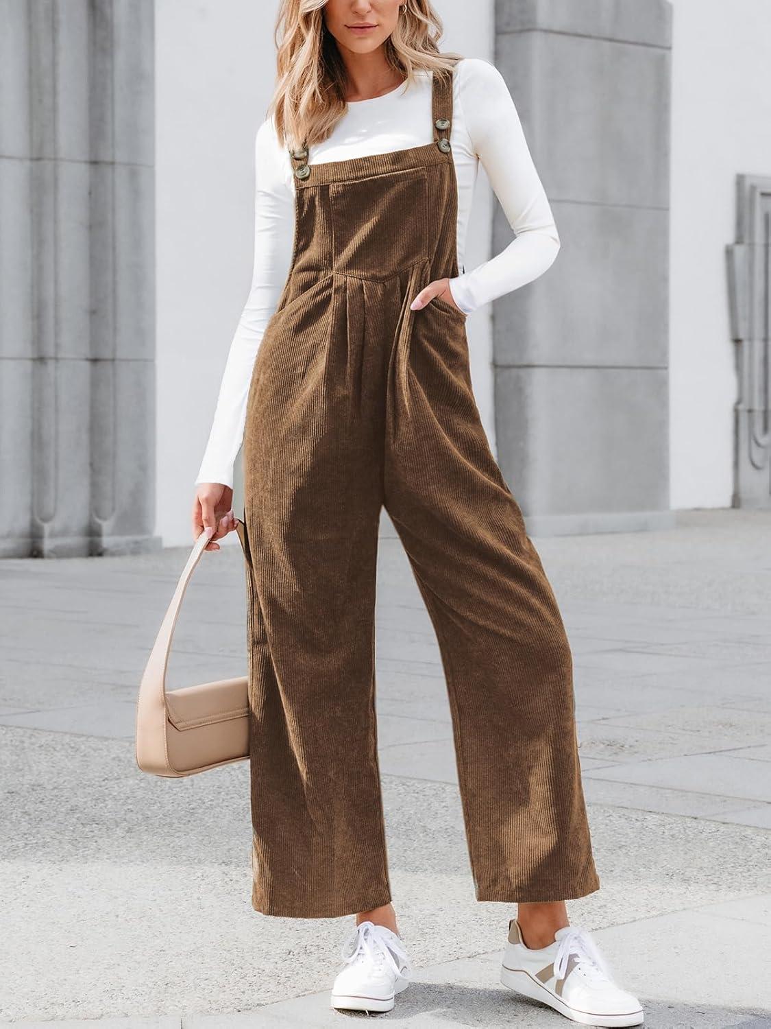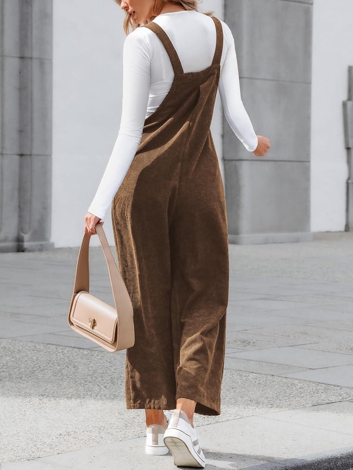 CUPSHE Womens Jumpsuit Corduroy Overalls Square Neck Sleeveless Wide Leg Jumpsuits Pockets Casual Outfit Loose Fall Romper(Brown)