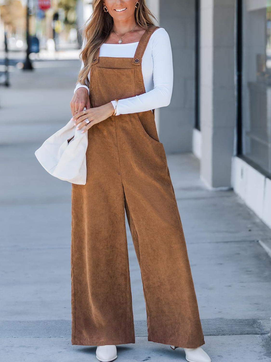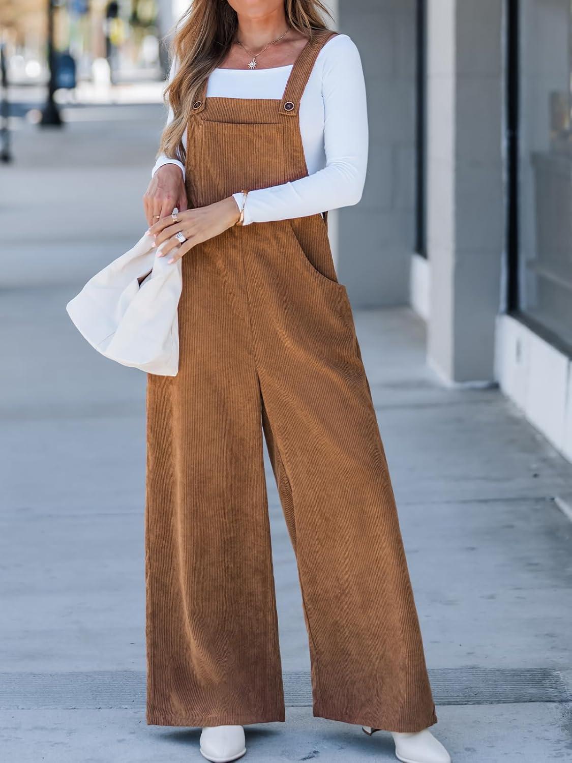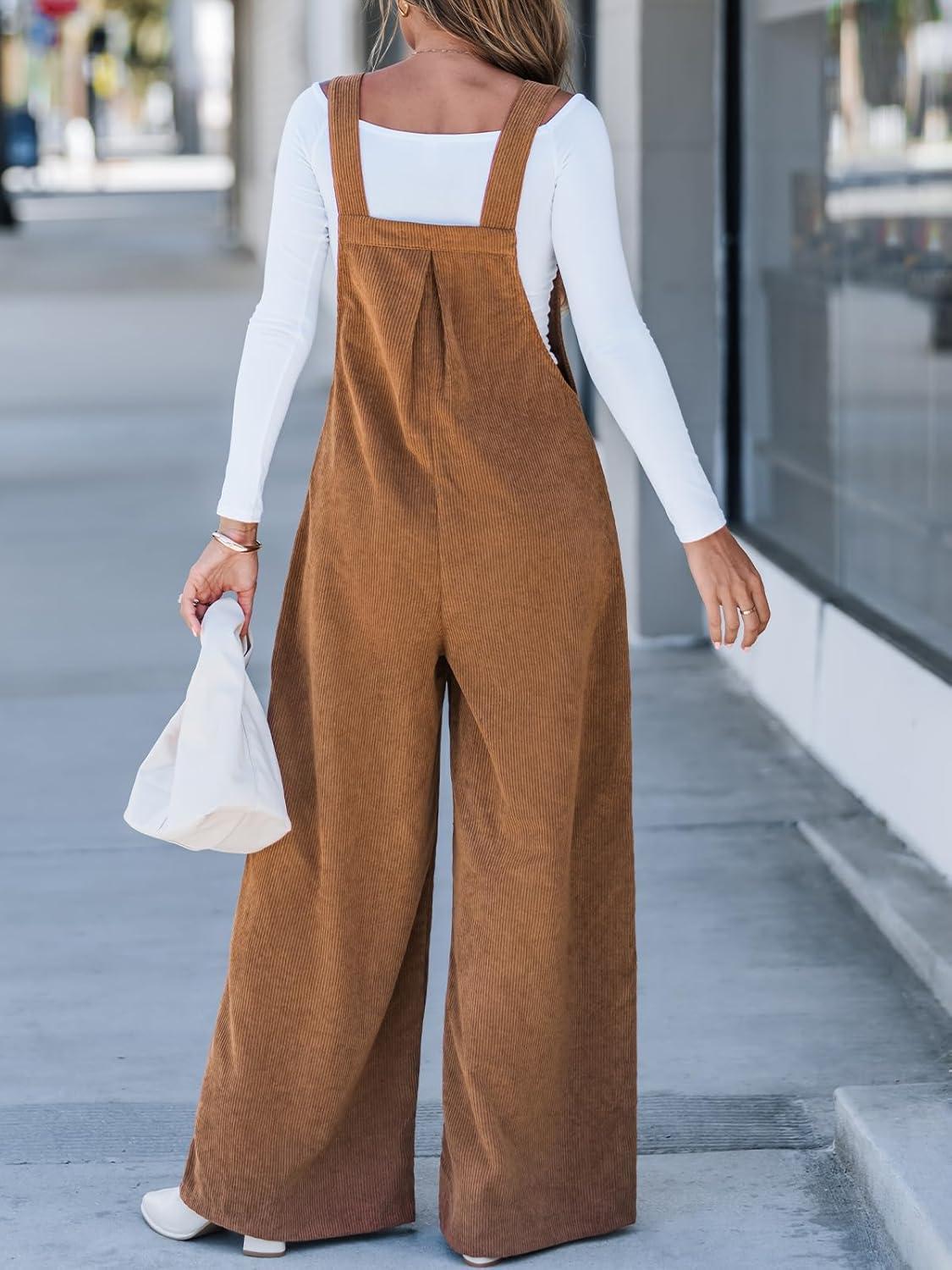 CUPSHE Womens Jumpsuit Corduroy Overalls Square Neck Sleeveless Wide Leg Jumpsuits Pockets Casual Outfit Loose Fall Romper(Camel Brown)