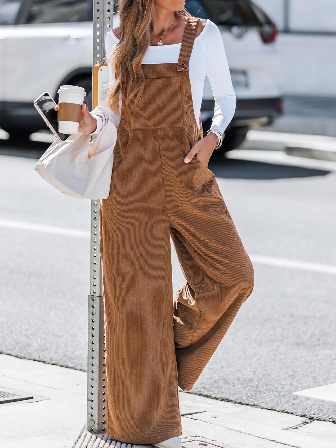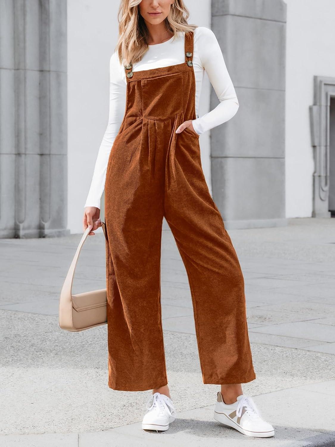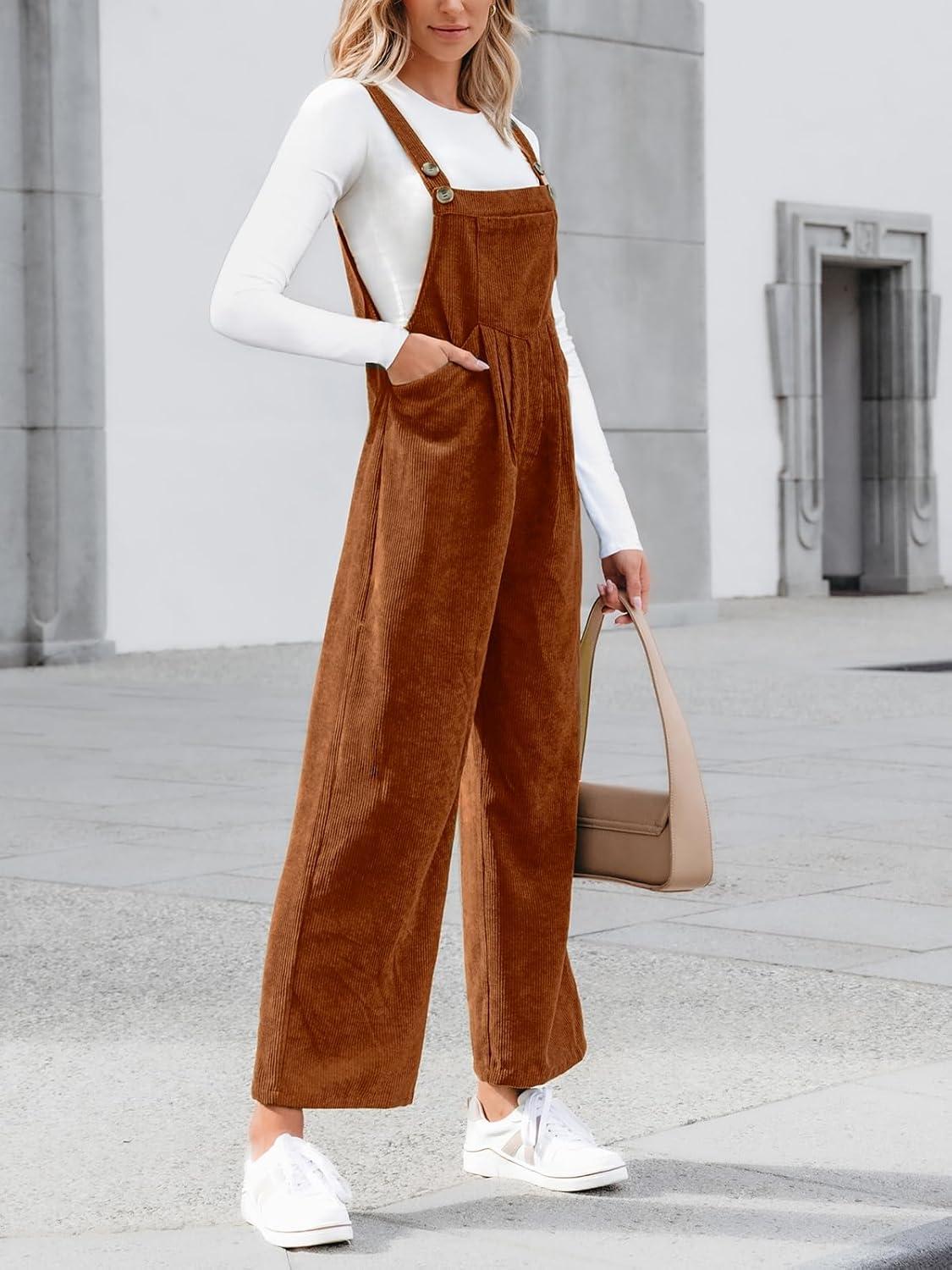 CUPSHE Womens Jumpsuit Corduroy Overalls Square Neck Sleeveless Wide Leg Jumpsuits Pockets Casual Outfit Loose Fall Romper(Camel Brown)