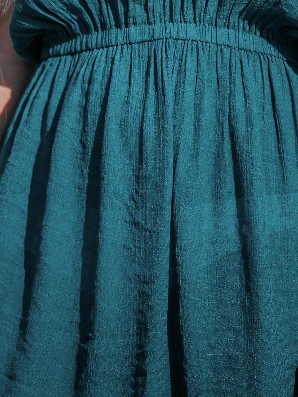 CUPSHE Women’s Swimsuit Coverup Casual V Neck Beach Dress Short Sleeve Elastic Waist Swimwear Cover Ups 2026 Beachwear(Turquoise)