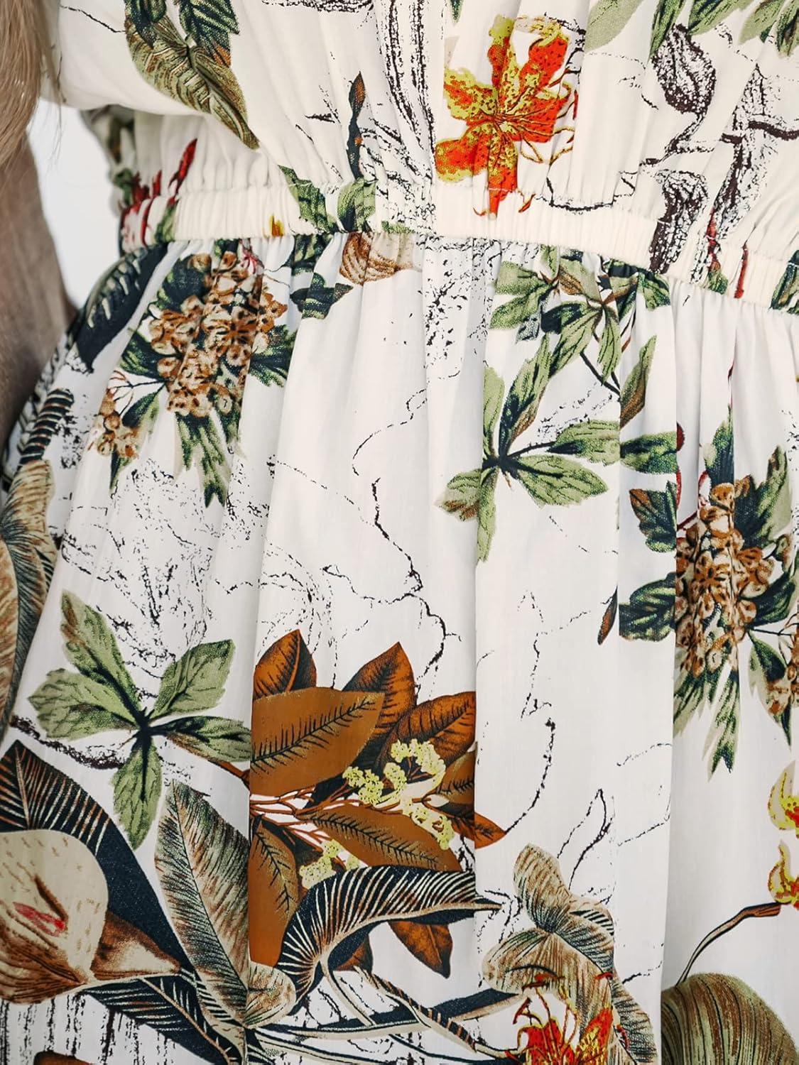CUPSHE Women’s Swimsuit Coverup Casual V Neck Beach Dress Short Sleeve Elastic Waist Swimwear Cover Ups 2026 Beachwear(White Green Leaf)