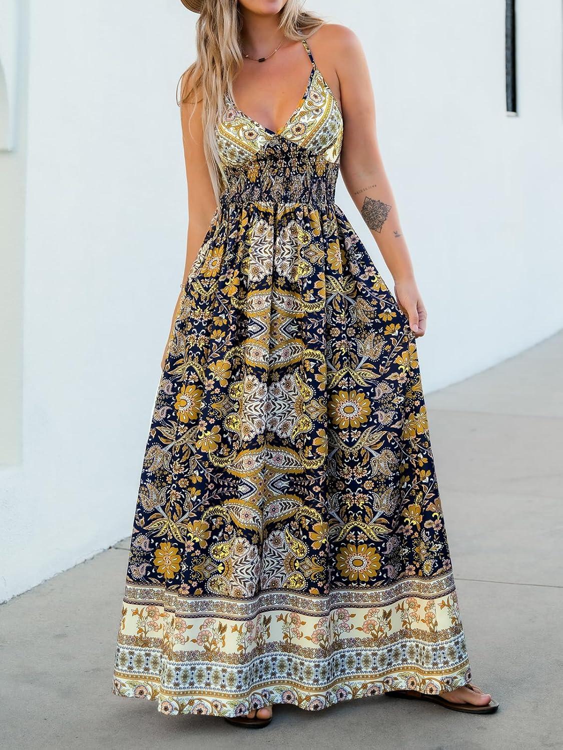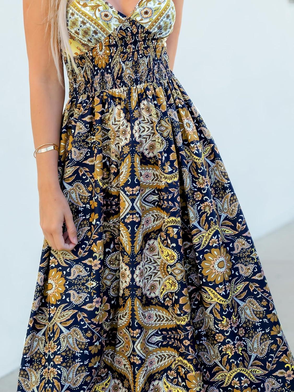 Adjustable Strap Beach Dress Beach Dresses Cover Bikini Sets Deep V Neck Floral Smocked High Waisted Long Sleeve Tops Low Rise Bottom Maxi Dress Mini Dresses Casual One Piece Swimsuit Smocking Jumpsuit Summer Dresses Summer Romper Swim Cover Up Swimsuit Coverup Tummy Control Two Piece Swimsuit V Neck Halter