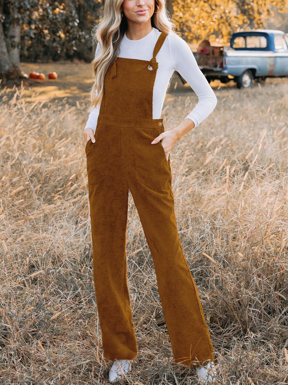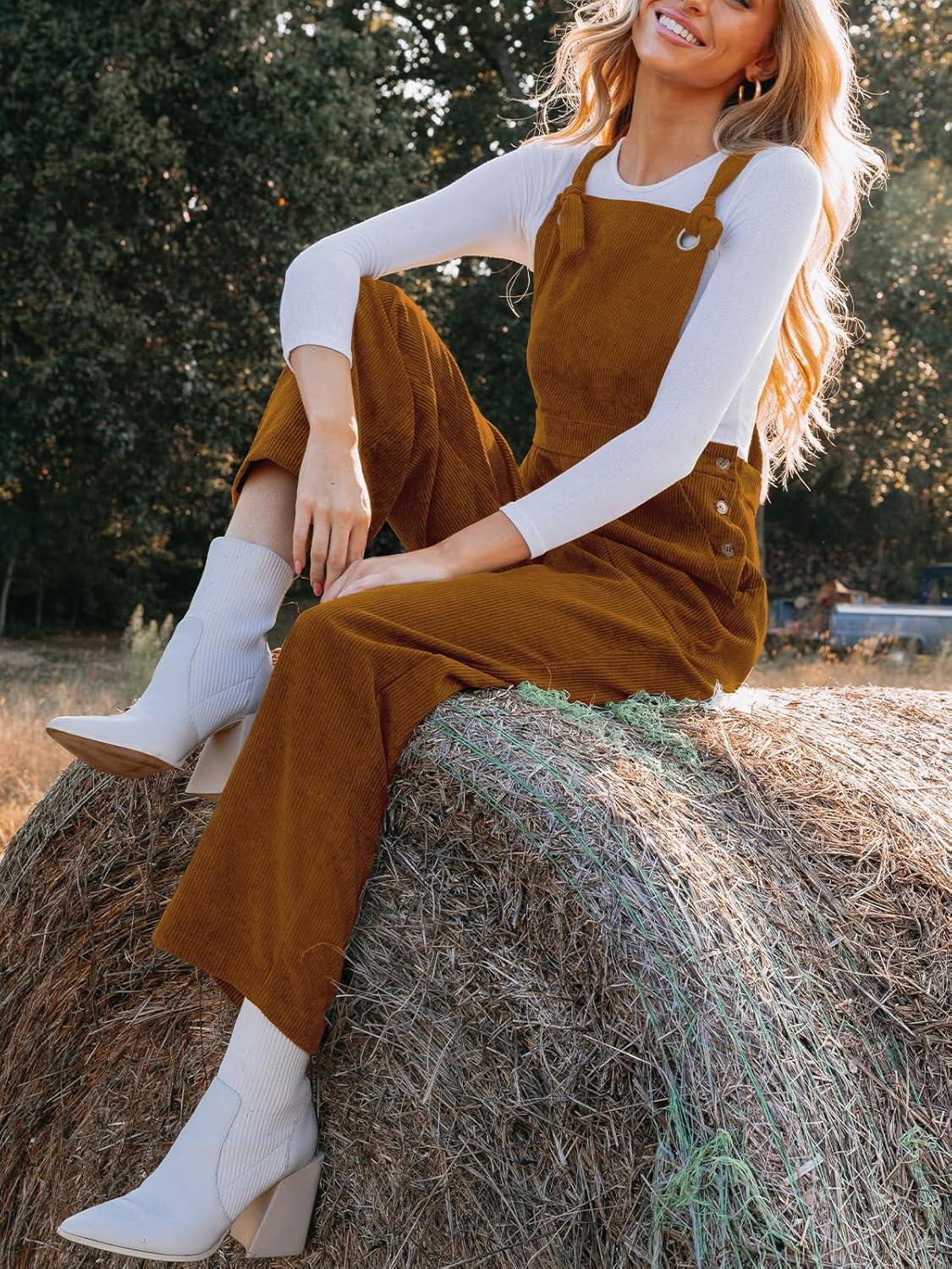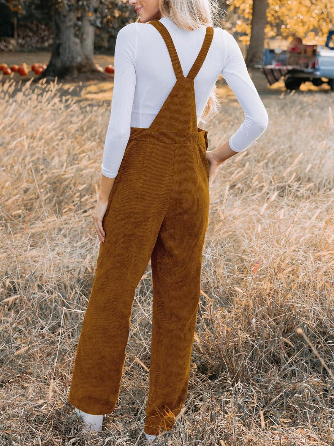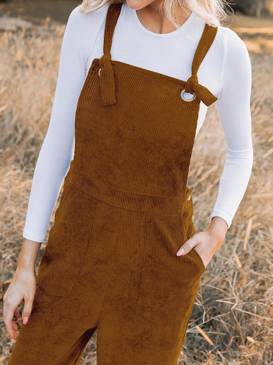 CUPSHE Women’s Corduroy Fall Overall Jumpsuits Self Tie Strap Slanted Front Pockets Side Buttons Wide Leg Casual Rompers(Orange)