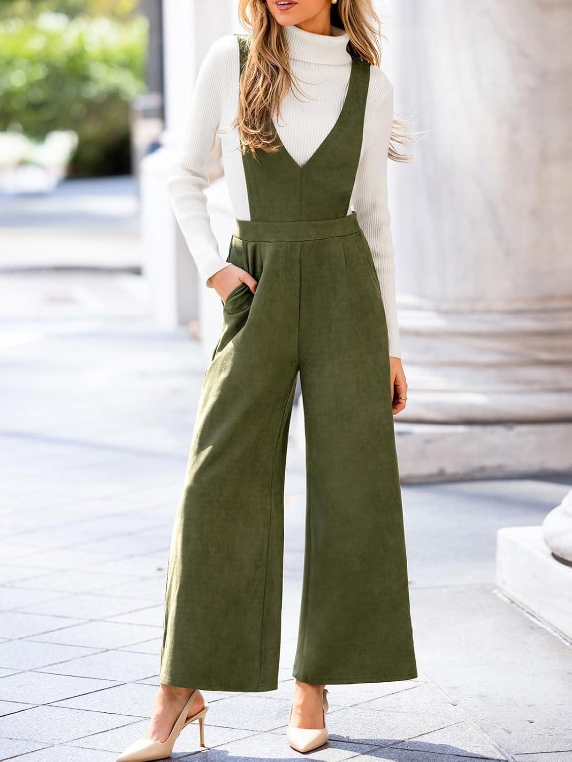 CUPSHE Women’s Jumpsuits Casual V Neck Sleeveless Wide Leg Loose Fit One Piece Jumpsuit with Pockets(Green)