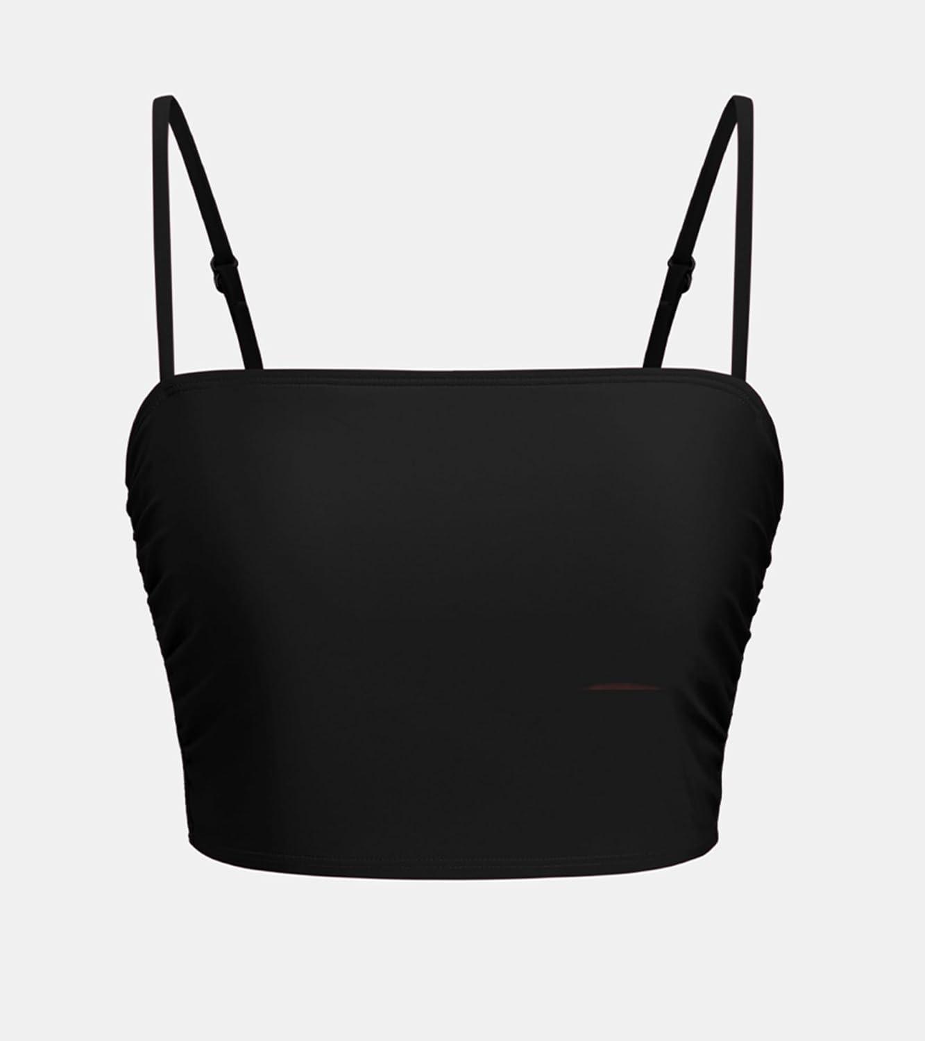 CUPSHE Womens Bikini Top Swimsuit Ruching Bandeau Top Spaghetti Adjustable Straps(Black)