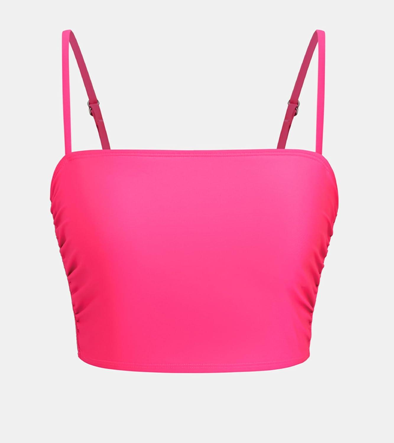 CUPSHE Womens Bikini Top Swimsuit Ruching Bandeau Top Spaghetti Adjustable Straps(Bright Pink)