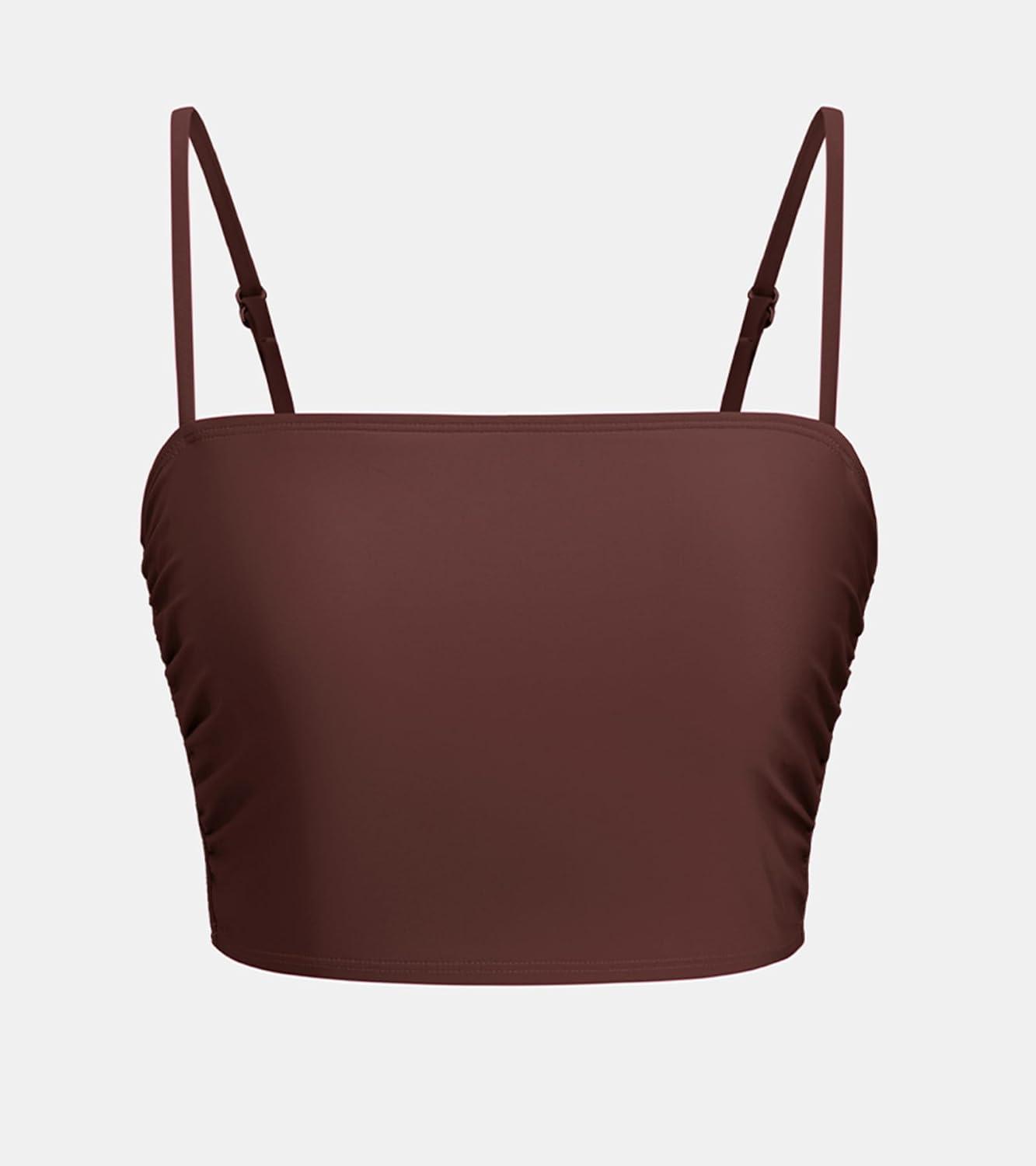 CUPSHE Womens Bikini Top Swimsuit Ruching Bandeau Top Spaghetti Adjustable Straps(Chocolate Brown)
