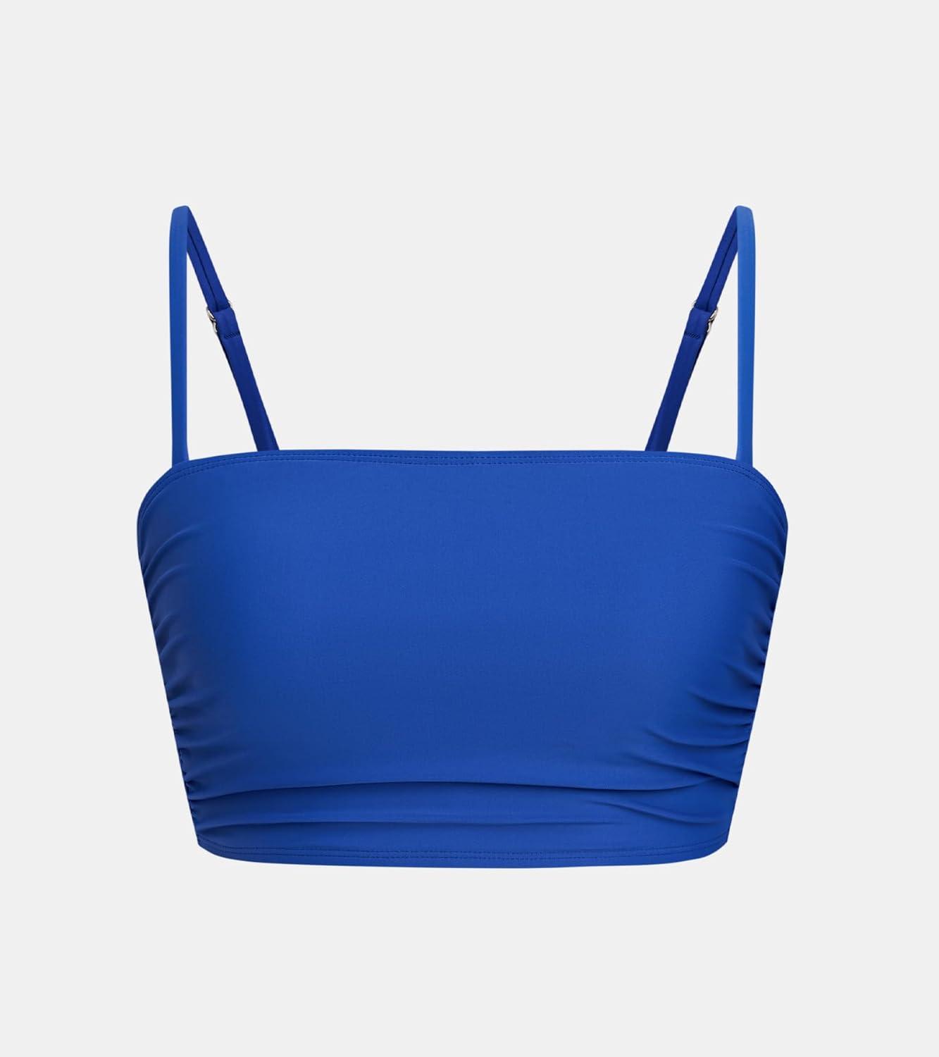 CUPSHE Womens Bikini Top Swimsuit Ruching Bandeau Top Spaghetti Adjustable Straps(Royal Blue)