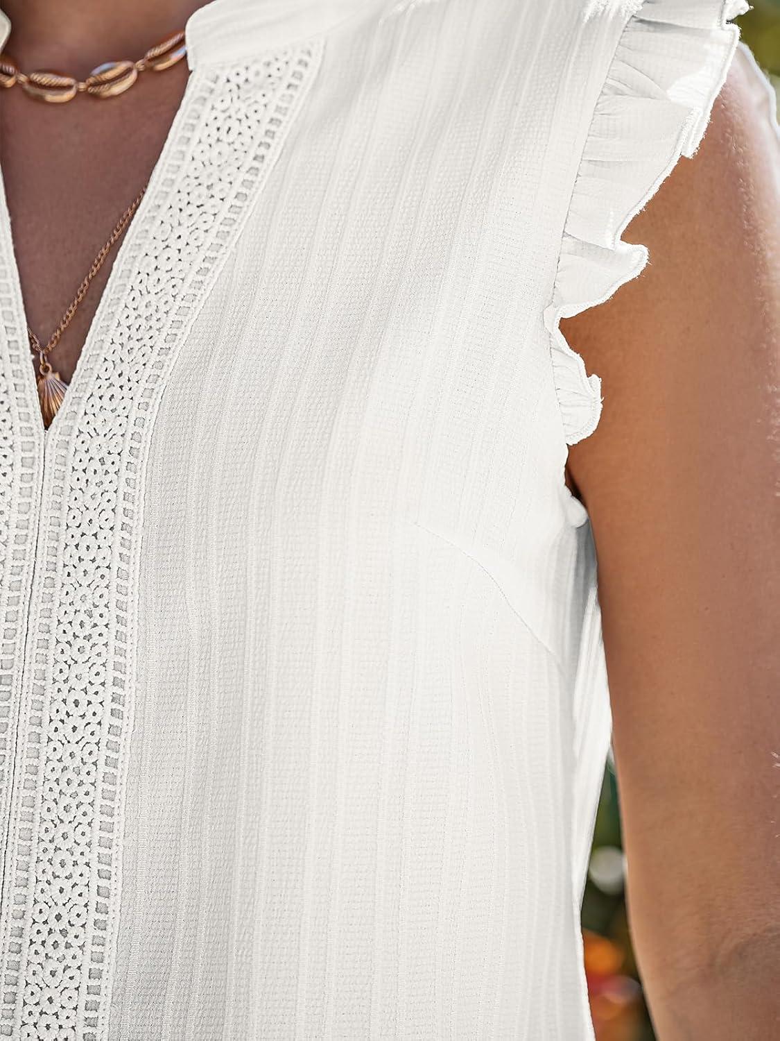 CUPSHE Womens Top Woven V Neck Sleeveless Smocked Cuffs Blouse Casual Loose(White)