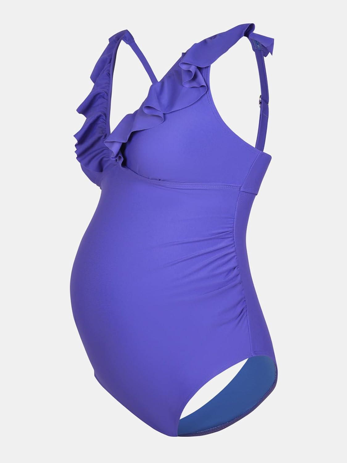 CUPSHE Women Swimsuit Maternity One Piece Bathing Suit Deep V Neck Ruffle Back Tie Ruching Adjustable Straps Swimwear(Electric Blue)