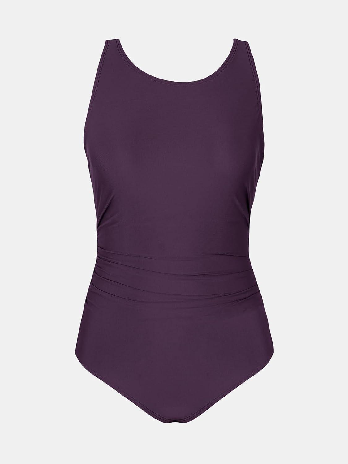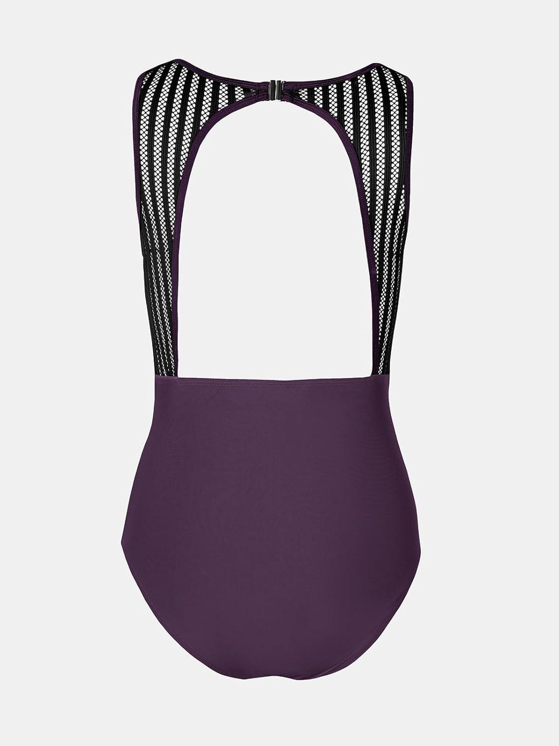 CUPSHE Women’s One Piece Swimsuit Bathing Suit Tummy Control High Neck Cutout Back Hook Mesh Swimwear(Deep Purple)