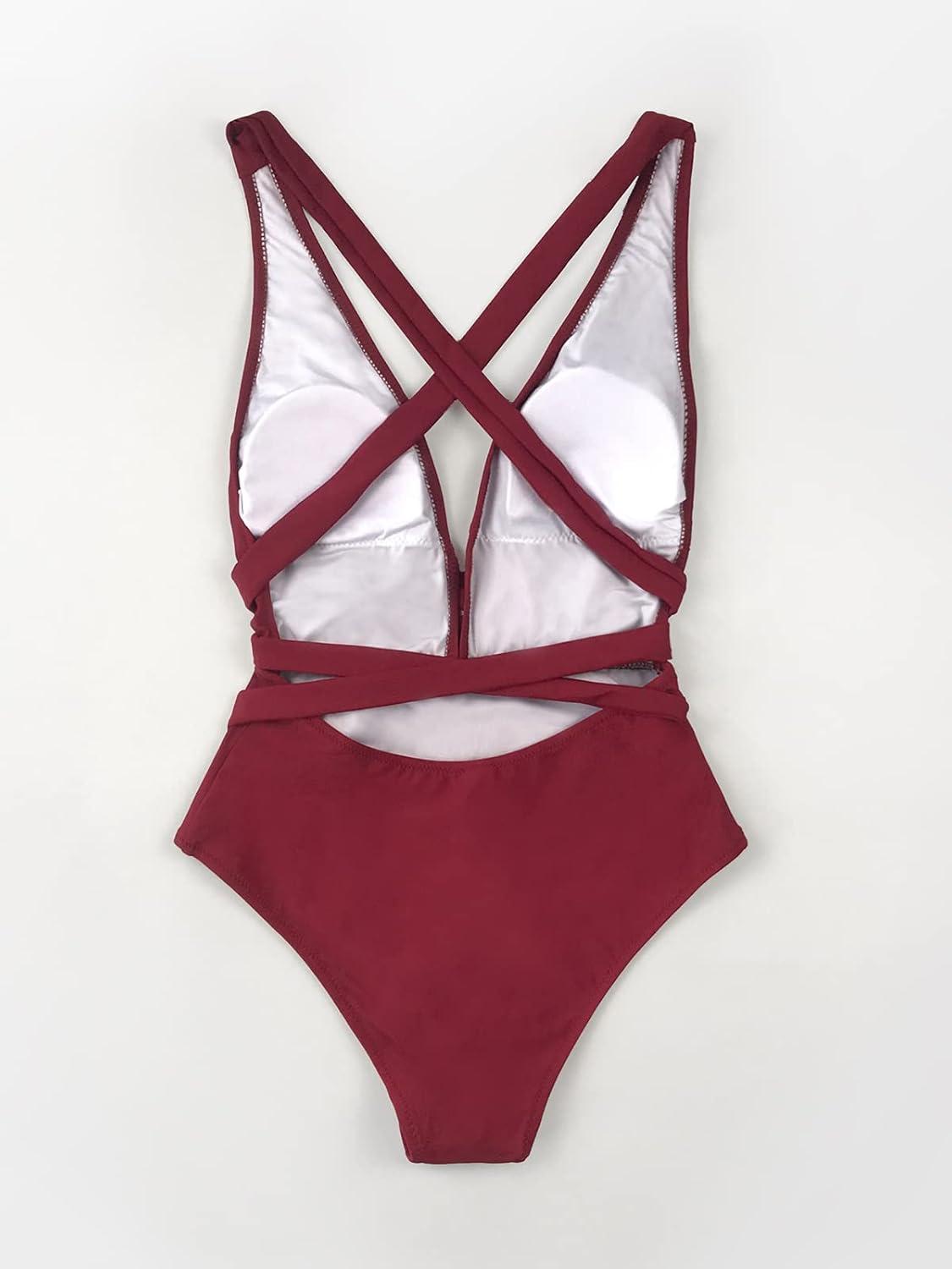 CUPSHE Women‘s One Piece Swimsuit Plus Size Tummy Control V Neck Bathing Suit Curvy Cutout Slimming(Wine Red)