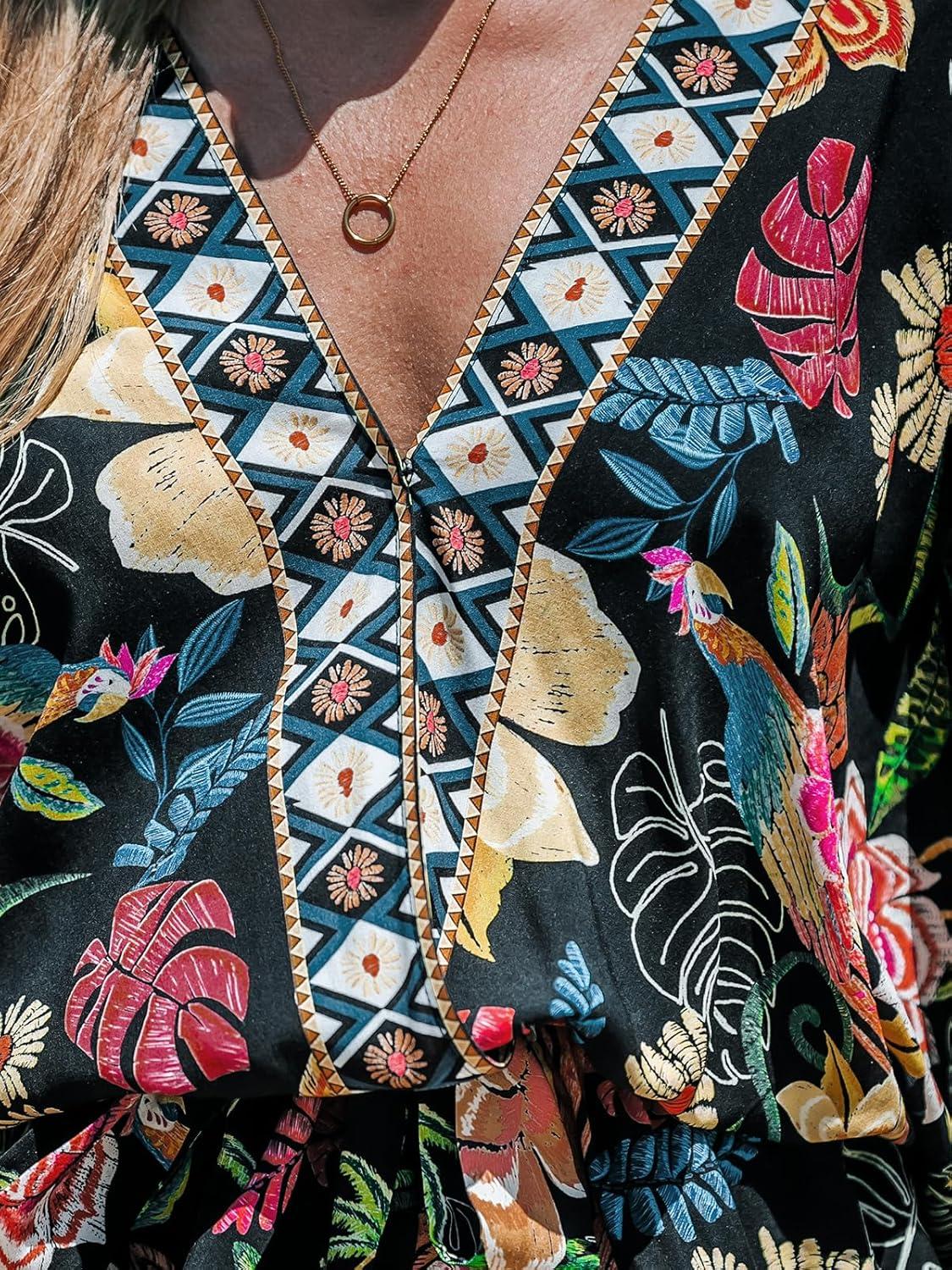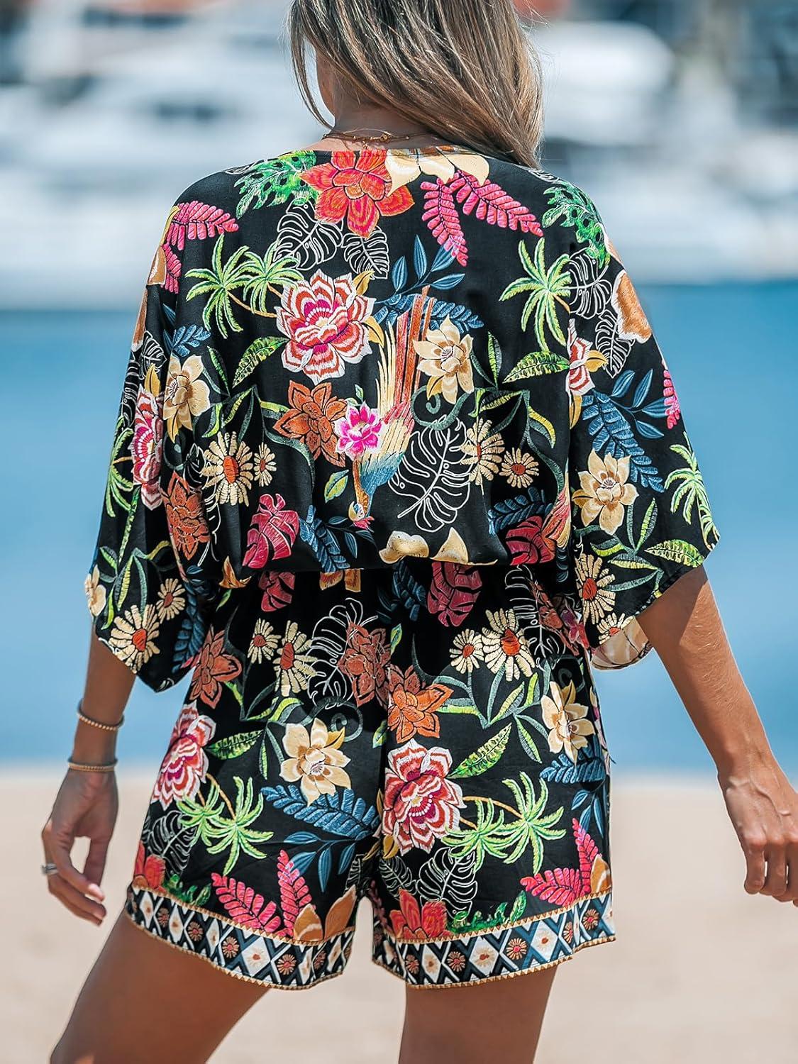 CUPSHE Women’s Summer Romper Lace Up Printed Half Sleeves Casual Wide leg Vacation Outfit Mini One Piece Jumpsuit(Black Floral)