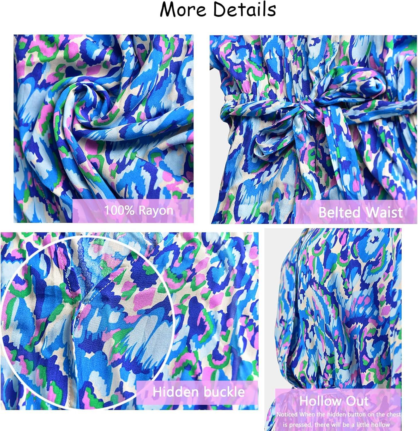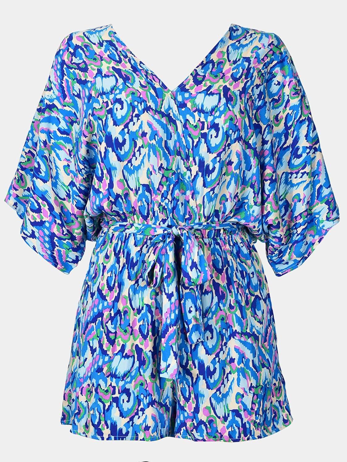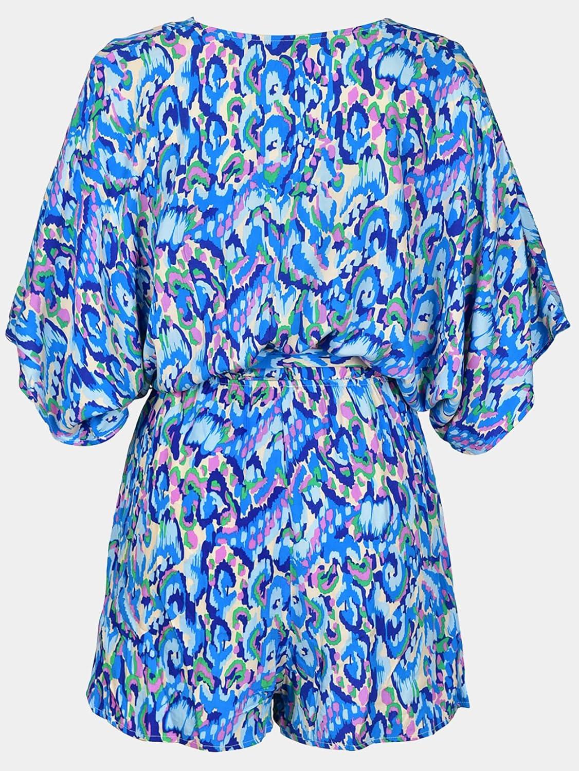 CUPSHE Women’s Summer Romper Lace Up Printed Half Sleeves Casual Wide leg Vacation Outfit Mini One Piece Jumpsuit(Blue Abstract)
