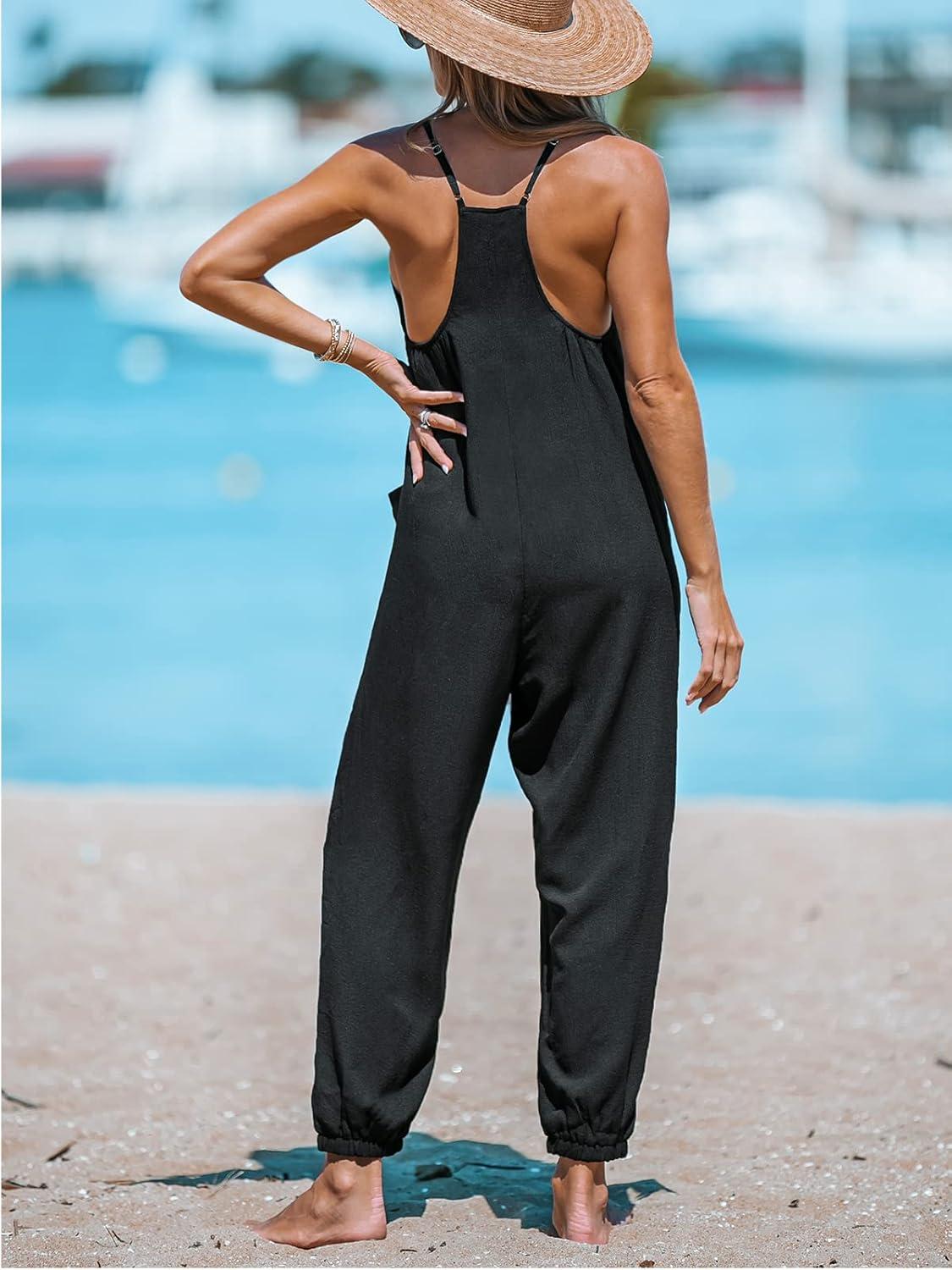 CUPSHE Women Casual Adjustable Cami Straps Overalls Summer V-Neck Joggers(Black)