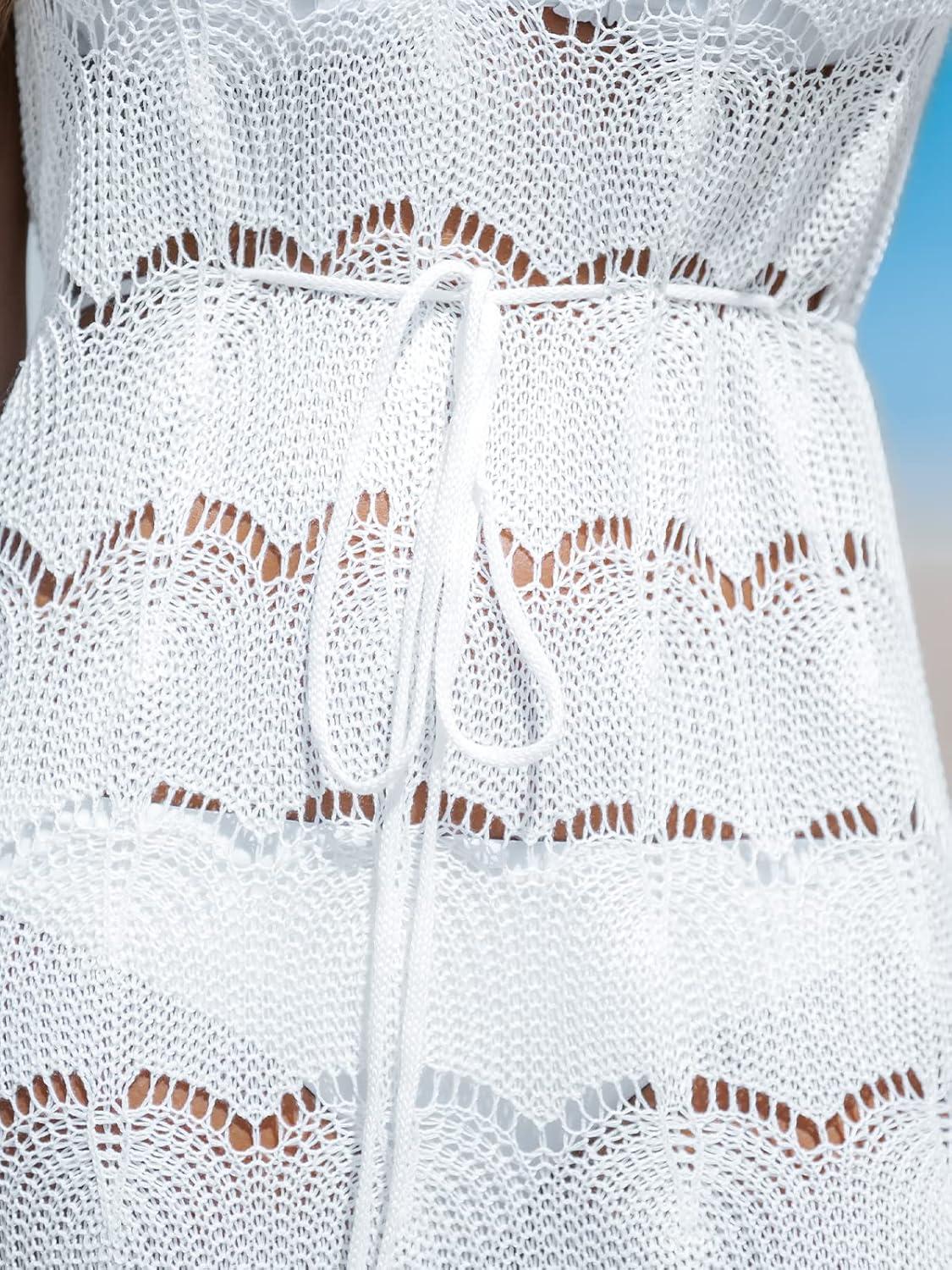 CUPSHE Women Crochet V-Neck Drawstring Cover-Up Dress Sleeveless V Neck Cover Up Summer(White)