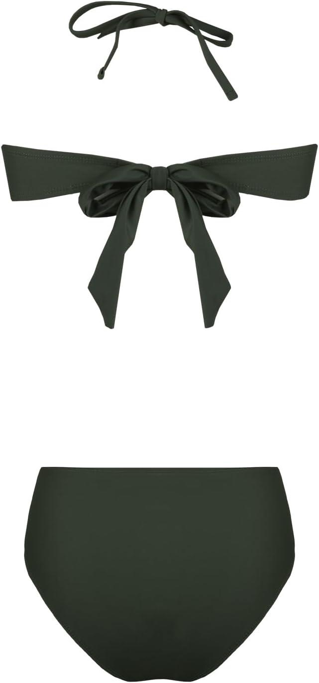 CUPSHE Bikini Set for Women Two Piece Swimsuit Bandeau Top Back Tie Mid Waisted Bottom with Removable Shoulder Straps(Army Green)