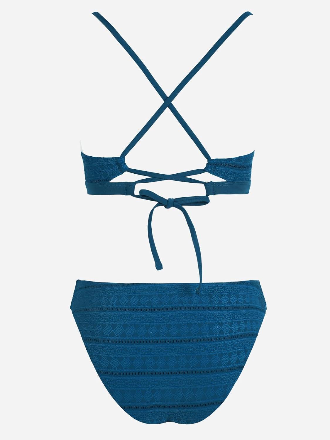 CUPSHE Bikini Set for Women Two Piece Swimsuits V Neck Low Rise Crisscross Back Self Tie Spaghetti Straps(Midnight Blue)