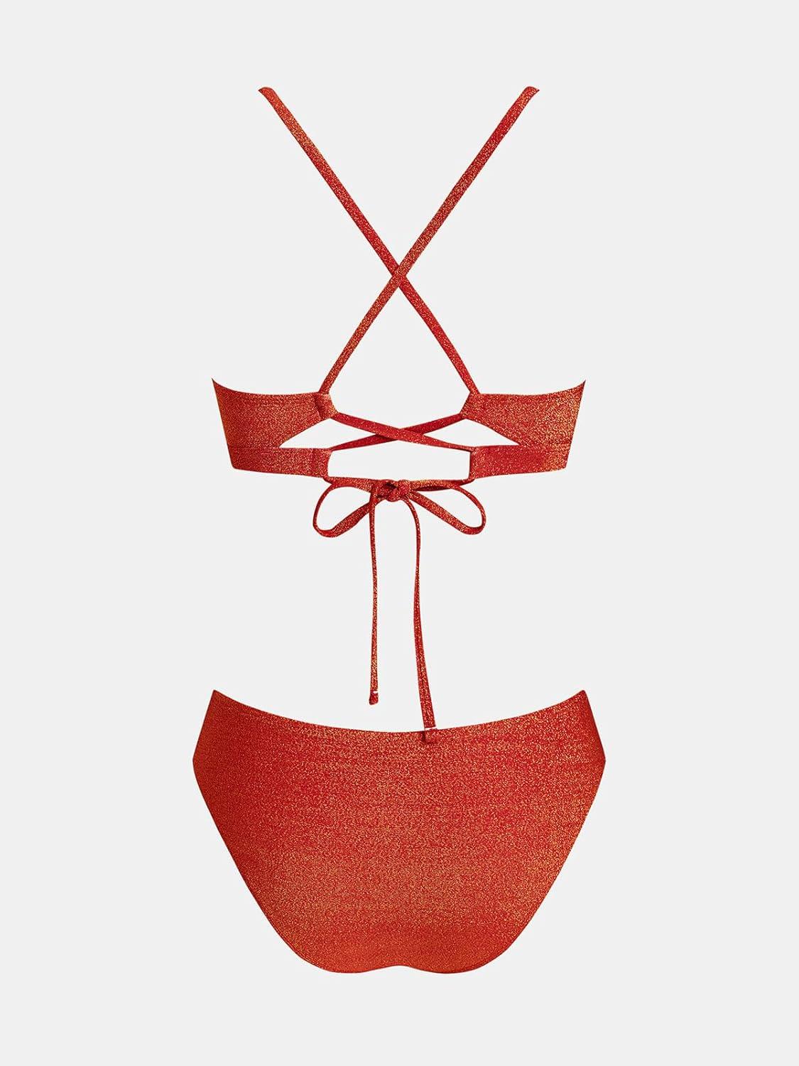 Be the first to review “CUPSHE Bikini Set for Women Two Piece Swimsuits V Neck Low Rise Crisscross Back Self Tie Spaghetti Straps(Sparkle Red)”