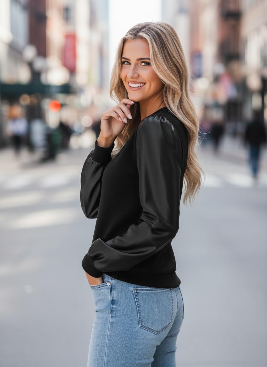 CUPSHE Faux Leather Tops for Women Long Sleeve Mock Neck Blouse Fall Fashion 2025(Black-2)