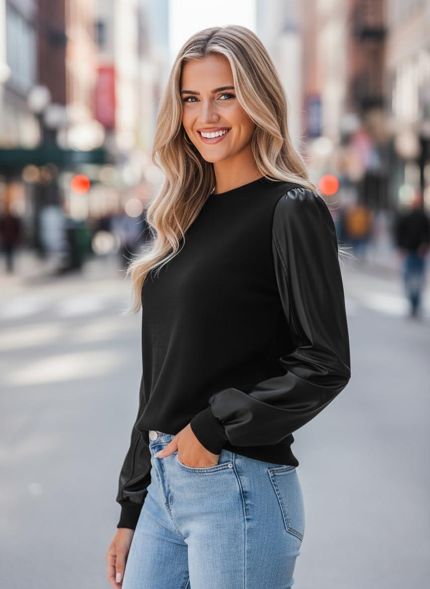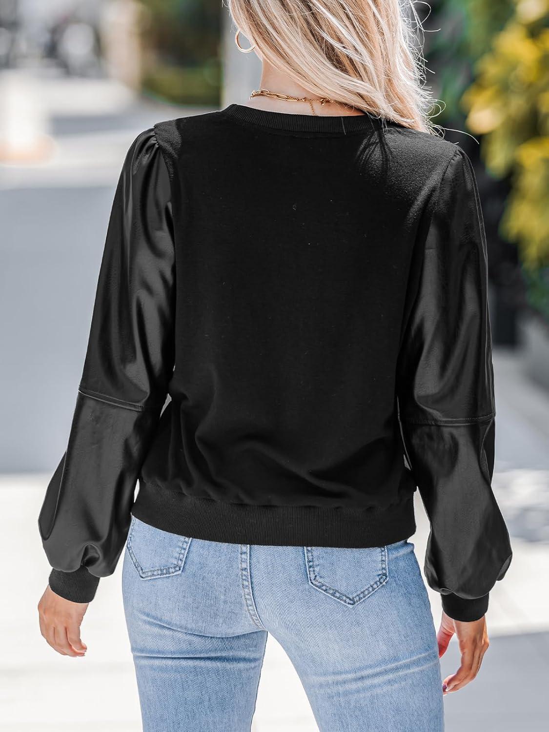 CUPSHE Faux Leather Tops for Women Long Sleeve Mock Neck Blouse Fall Fashion 2025(Black)