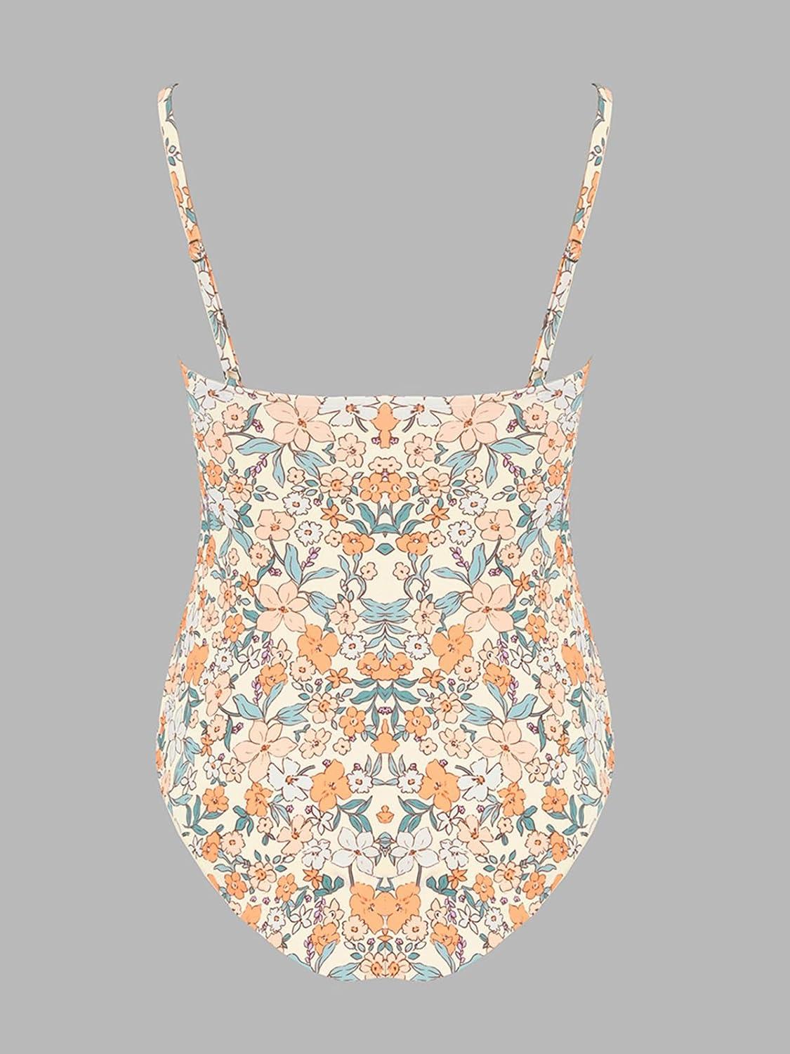 CUPSHE Maternity Swimsuit for Women One Piece Swimsuits Pregnancy Swimwear Spaghetti Straps Ruched Adjustable(Yellow/Floral)