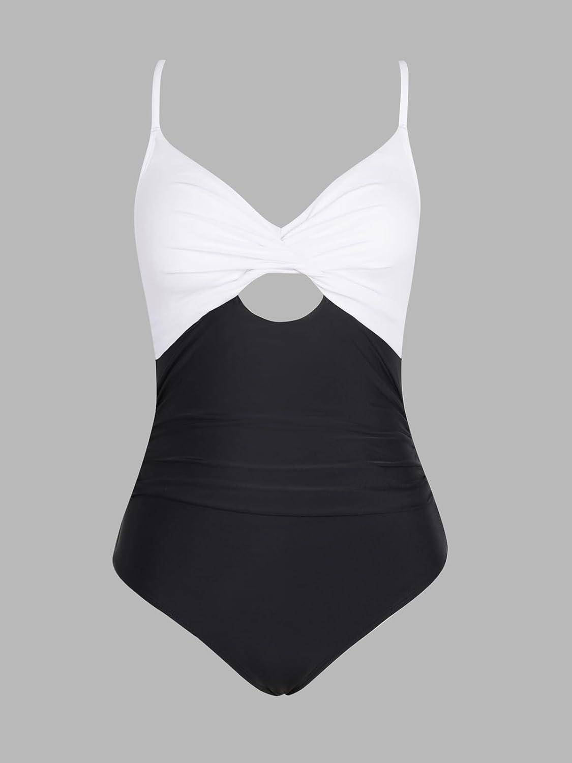 Be the first to review “CUPSHE One Piece Swimsuit for Women Bathing Suits Twist Front Cutout Adjustable Straps Ruched Swimwear(Black/White)”