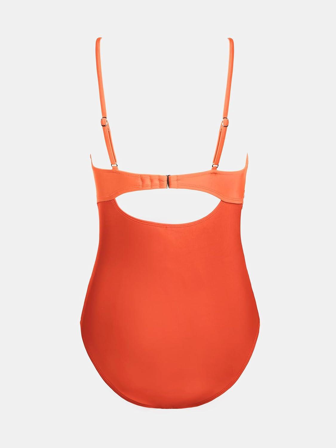 CUPSHE One Piece Swimsuit for Women Bathing Suits Twist Front Cutout Adjustable Straps Ruched Swimwear(Orange Color Block)