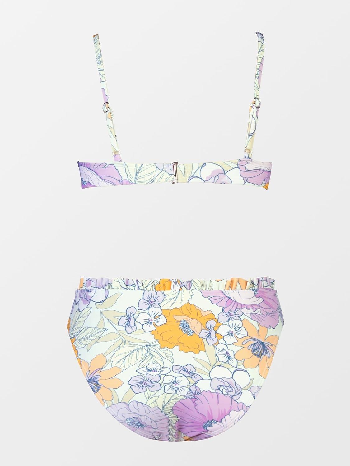 CUPSHE Women Swimsuit Bikini Set High Waisted Push Up Cheeky Drawstring Two Piece Bathing Suit(Lavender)