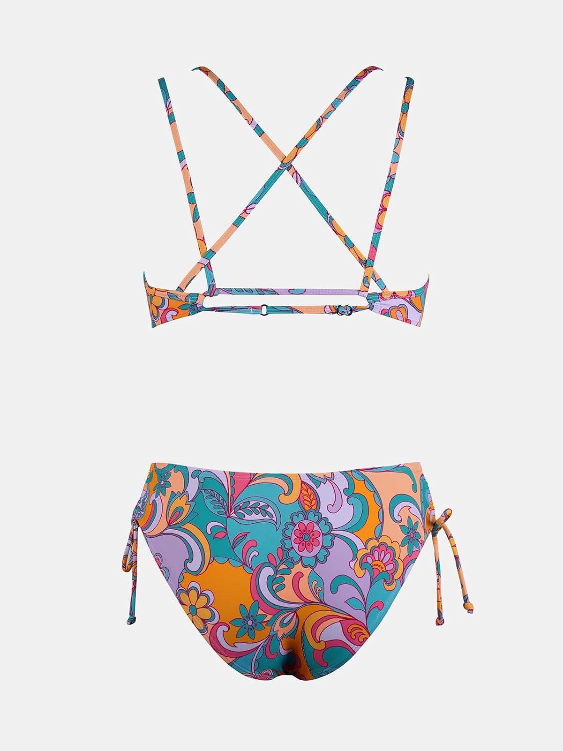 CUPSHE Women Swimsuit Bikini Set Two Piece Bathing Suit Criss Cross Back Strappy Side with Double Spaghetti Straps(Multi Color/Paisley)
