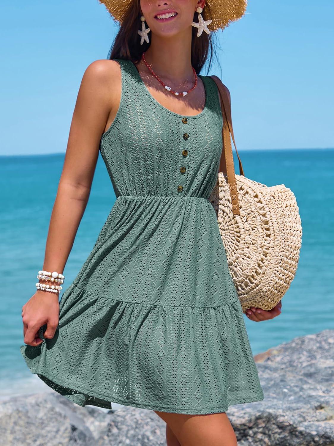 CUPSHE Women Swimsuit Cover Ups Sleeveless Button Front Semi Sheer Beach Coverup Dress(Eucalyptus Green)