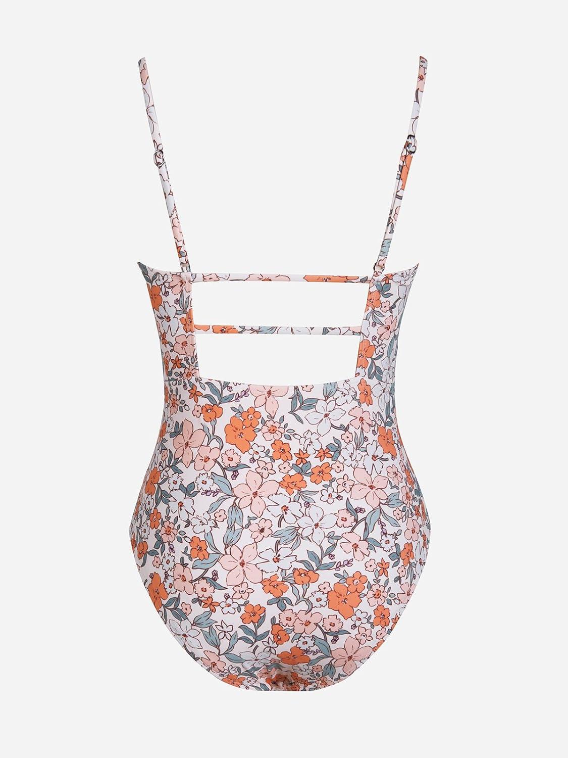 CUPSHE Women Swimsuit One Piece Bathing Suit Square Neck Cutout Back Tummy Control with Adjustable Spaghetti Straps(Cantaloupe Orange Ditsy)