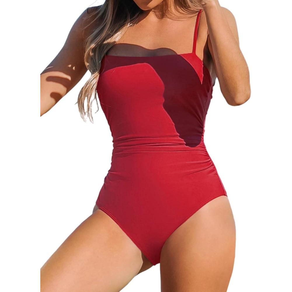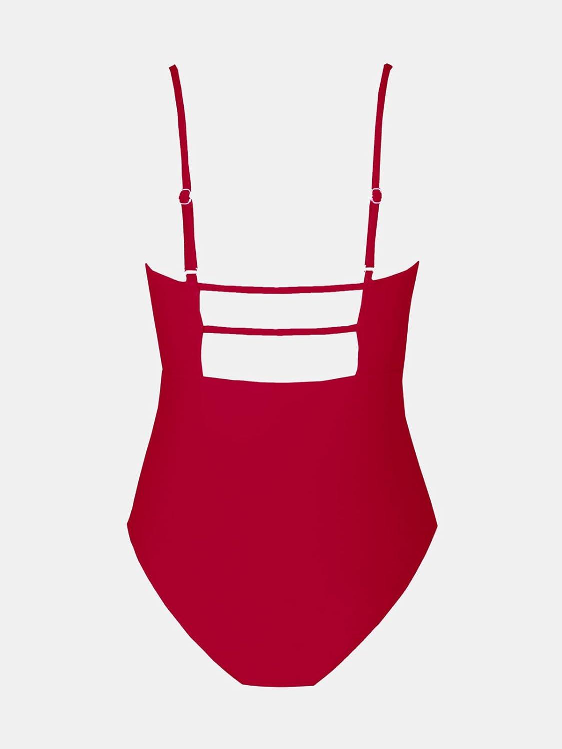 CUPSHE Women Swimsuit One Piece Bathing Suit Square Neck Cutout Back Tummy Control with Adjustable Spaghetti Straps(Red)